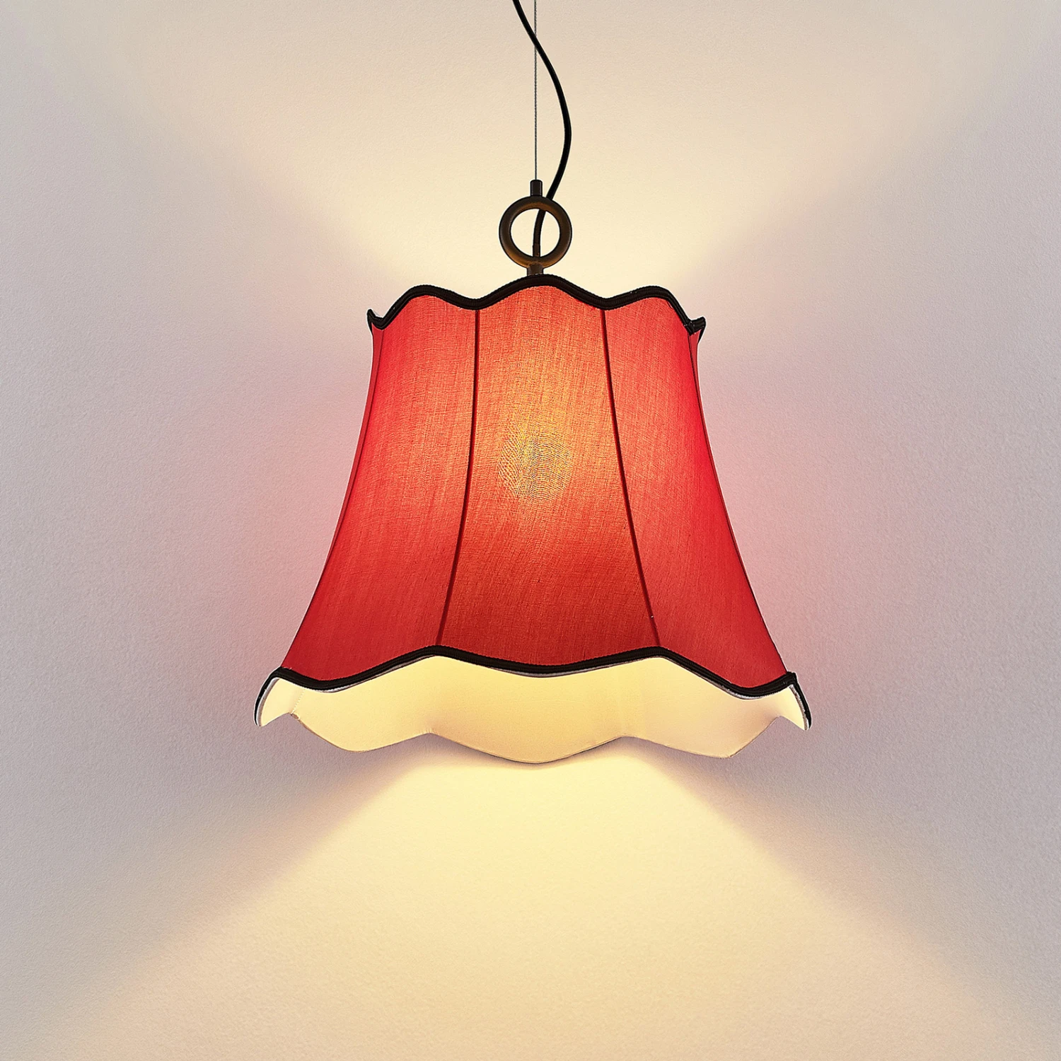 Wellenförmig abschließende Textilpendellampe Binta in schönem Rotton