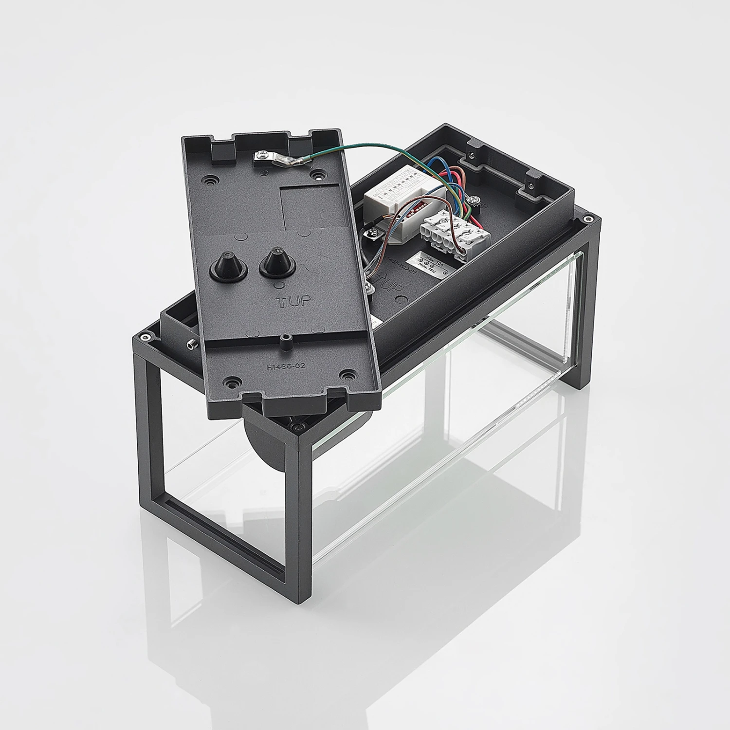 Im hinteren Teil sitzt eine Art Vinylabdeckung in Holzoptik, die sehr authentisch daherkommt und das an sich moderne Design mit einer warmen Note auflockert und individualisiert. Die seitlichen Gläser sind indes klar und durchsichtig, so dass der Blick gut ins Leuchteninnere gelangt. Das macht auch das Leuchtmittel zu einem gut sichtbaren Objekt, weshalb es mit Bedacht gewählt werden und eine dekorative Optik besitzen sollte. Daher eignen sich Filament- und Rustikalampen sehr gut, zumal diese meist die effiziente LED-Technik besitzen.