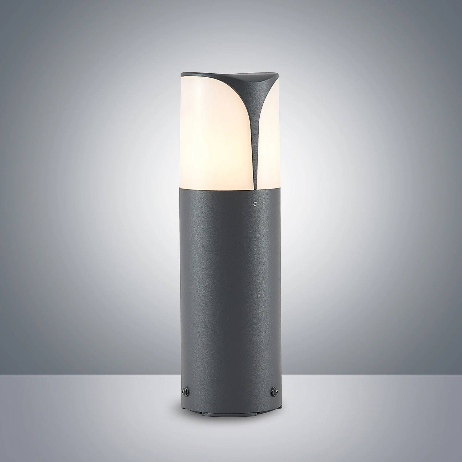 Dunkelgraues Aluminium wird hier geschickt komibiniert mit einem opalweißen Diffusor, sodass beide im Gesamtbild die elegante Form der modernen Sockelleuchte Paikea ergeben. Einsetzbar im gesamten Außenbereich rund ums Haus, erleuchtet Paikea Treppenaufgänge, kleine Mauern, Bereiche an der Terrasse oder auch am Hauseingang.