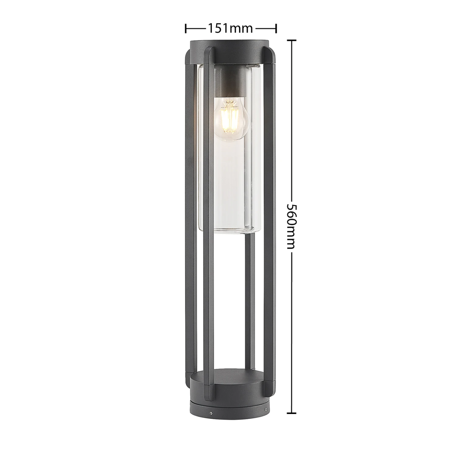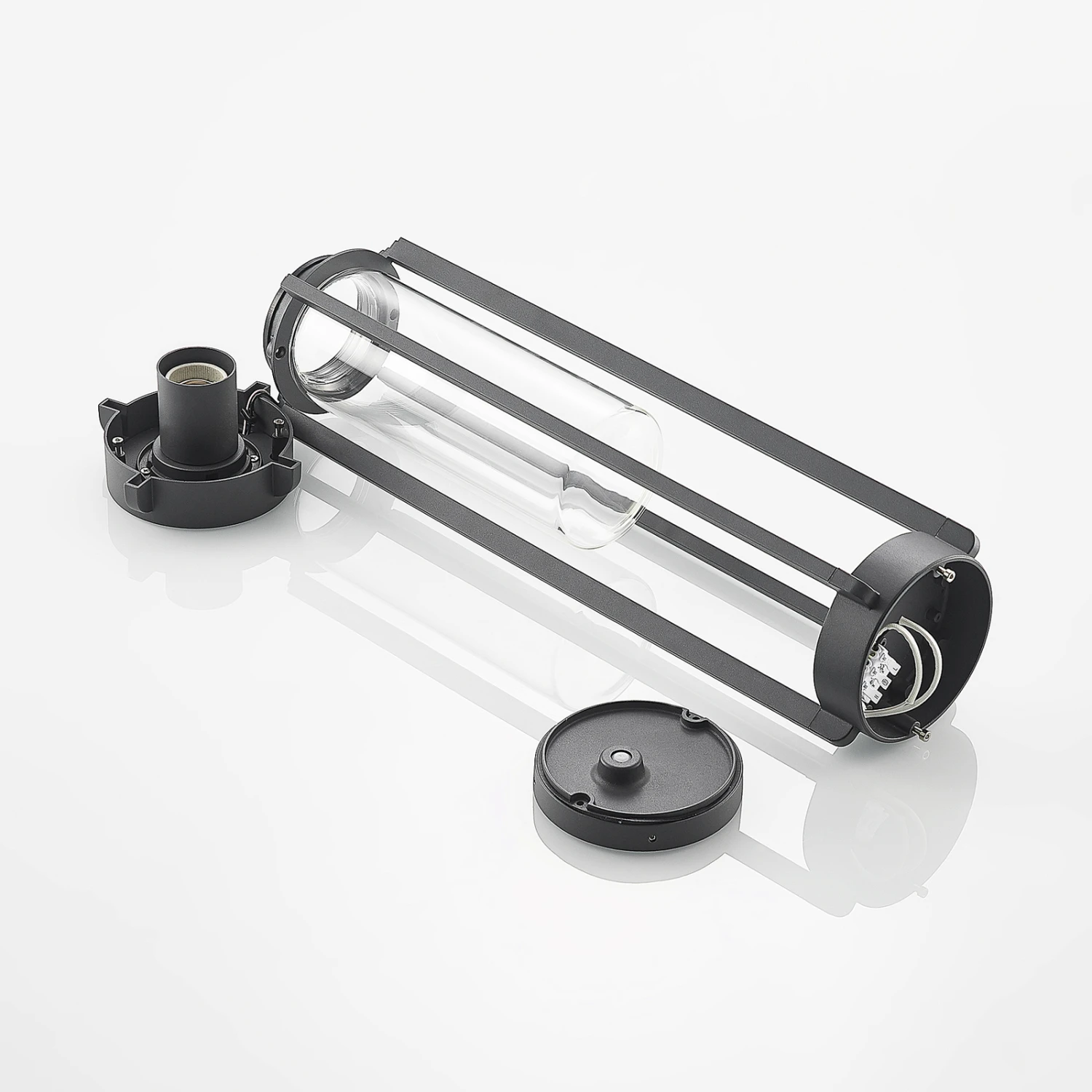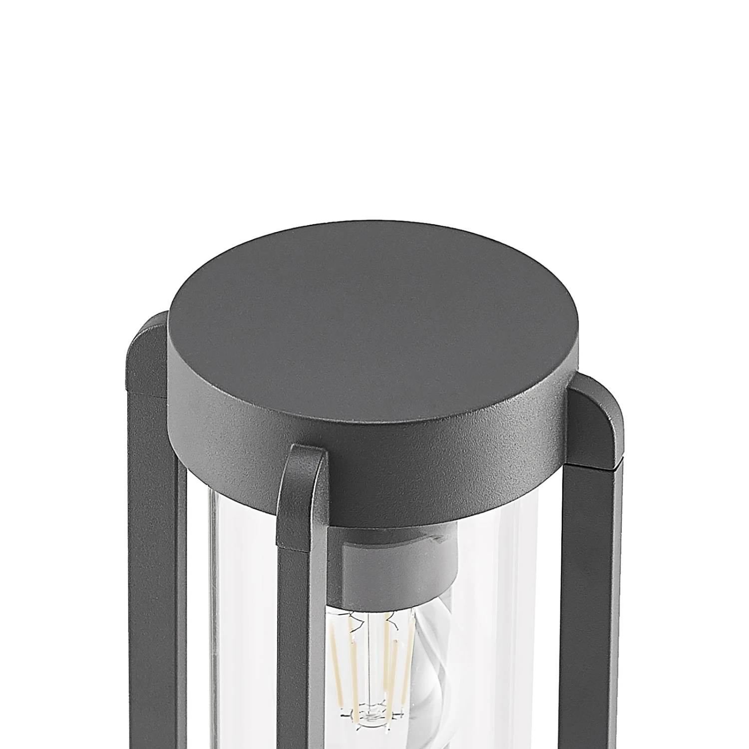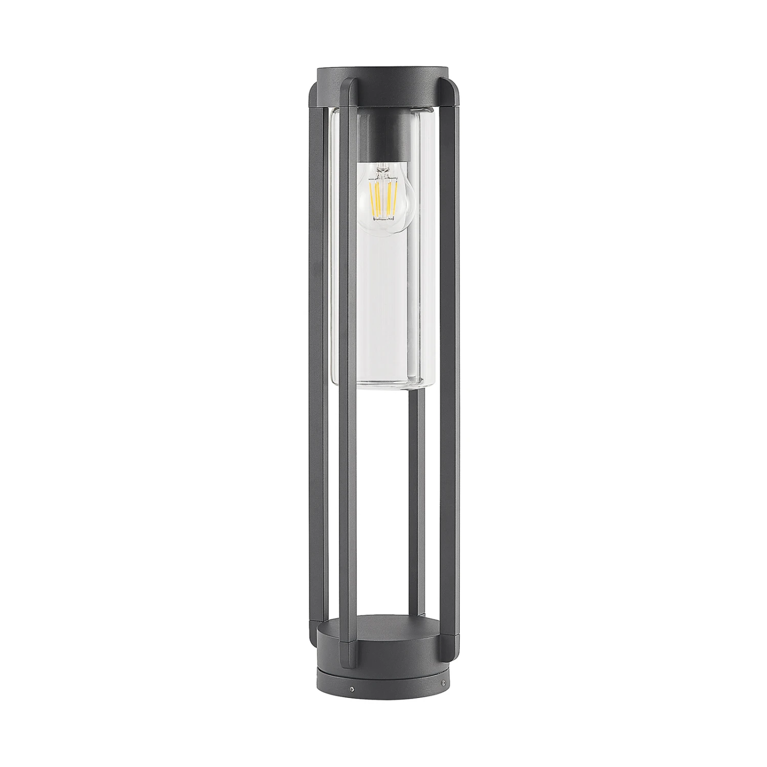 Dunkelgraue Sockelleuchte Tiras mit Gestell in Käfigform und Klarglasabdeckung