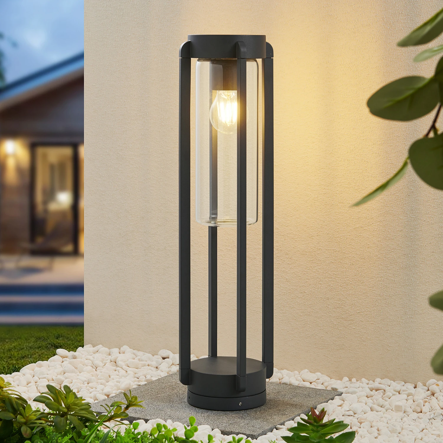 Tiras wirkt besonders zeitgemäß, lässt sich aber grundsätzlich in viele Umgebungen integrieren. Die Grundform ist rund und das Gestell gleicht ein wenig einem Käfig. Zum Schutz von Leuchtmittel und Elektrik befindet sich im Inneren ein Einsatz aus klarem Glas, der es ermöglicht, dass der Lichtschein ungehindert nach außen treten kann. Zudem erhöht er die Schutzart, die mit IP65 besonders hoch ist, damit die Witterung im Außenbereich der Leuchte so schnell nichts anhaben kann und man lange Freude mit dieser Lichtquelle für draußen hat. Die Sockellampe lässt sich gut auf kleineren Erhöhungen anbringen und so zum Beispiel auf einer Mauer im Garten oder im Hof installieren. Weil das Leuchtmittel jederzeit gut sichtbar ist, sollte es nicht nur nach technischen, sondern auch nach optischen Gesichtspunkten gewählt werden, um sich gut in die Gesamtoptik zu integrieren.