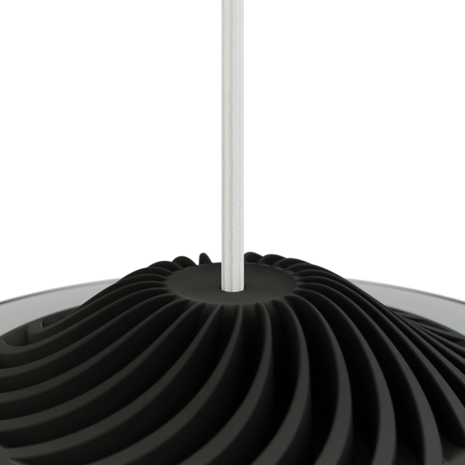 Luvo spendet sowohl direkte als auch indirekte Beleuchtung, beide Lichtquellen sind unabhängig voneinander schaltbar. Die innovative Lichtlenk-Technologie lenkt das direkte Licht in unglaubliche 84 Raumrichtungen. So kann mittels der App jeder beliebige Winkel des Raums für sich mit Helligkeit, Lichtfarbe und Farbtemperatur versorgt werden. Das indirekte Licht strahlt nach oben und ist in 16 Segmente unterteilt. Auch dabei ist eine ganz gezielte Einstellung möglich. So kann die Hängeleuchte Model F zum Beispiel zum Esszimmer hin in einem kühlen Universalweiß und zum Wohnzimmer hin mit einem angenehmen Warmweiß leuchten. Das indirekte Licht nach oben ermöglicht zusätzlich eine Lichtstimmung aus über 16 Mio. Farben. Per App lassen sich Lichtszenen generieren, die danach auch per Wandschalter anwählbar sind. Außerdem kann eine Licht-Weckfunktion zur gewünschten Zeit eingestellt werden. Mit Textilkabel bestückt.
