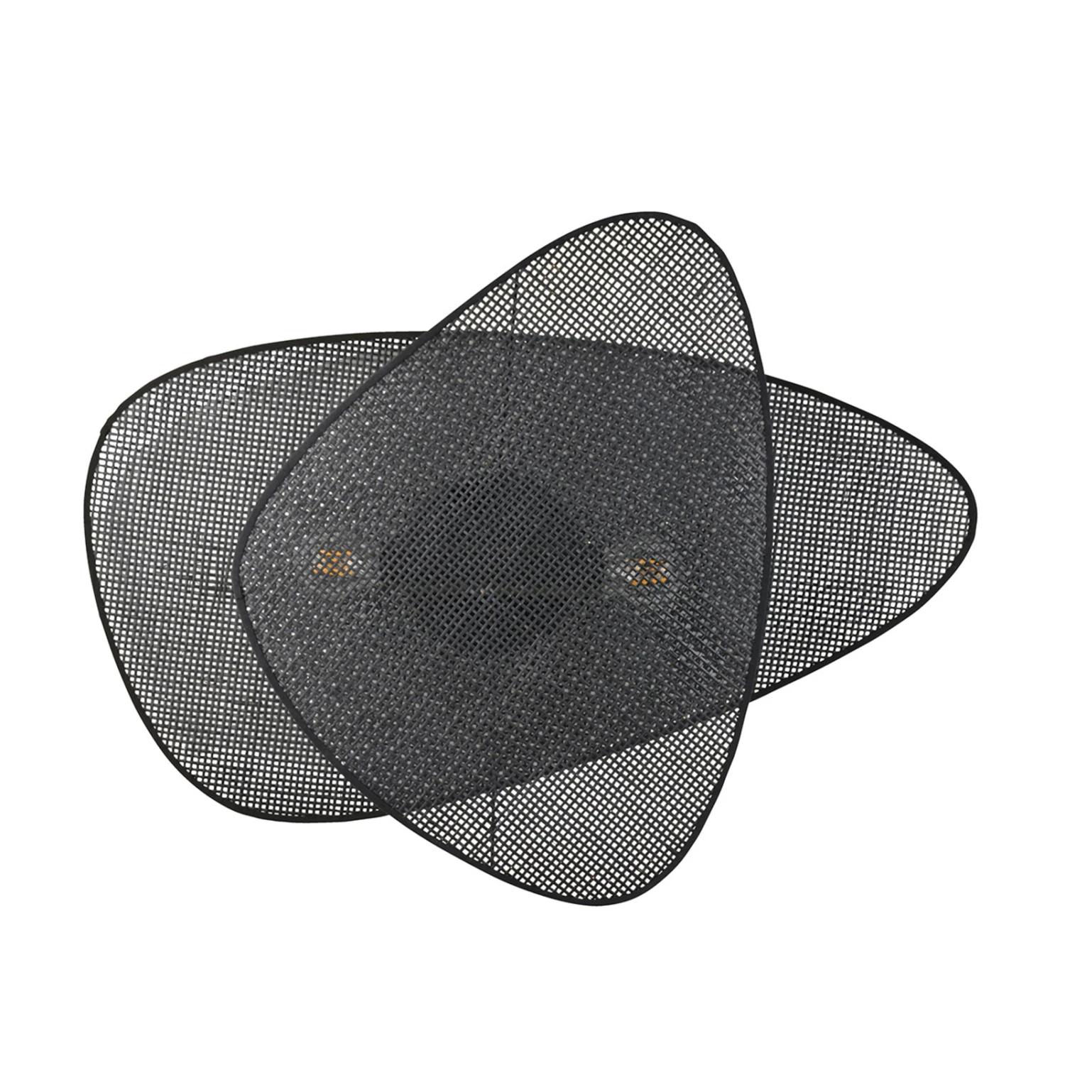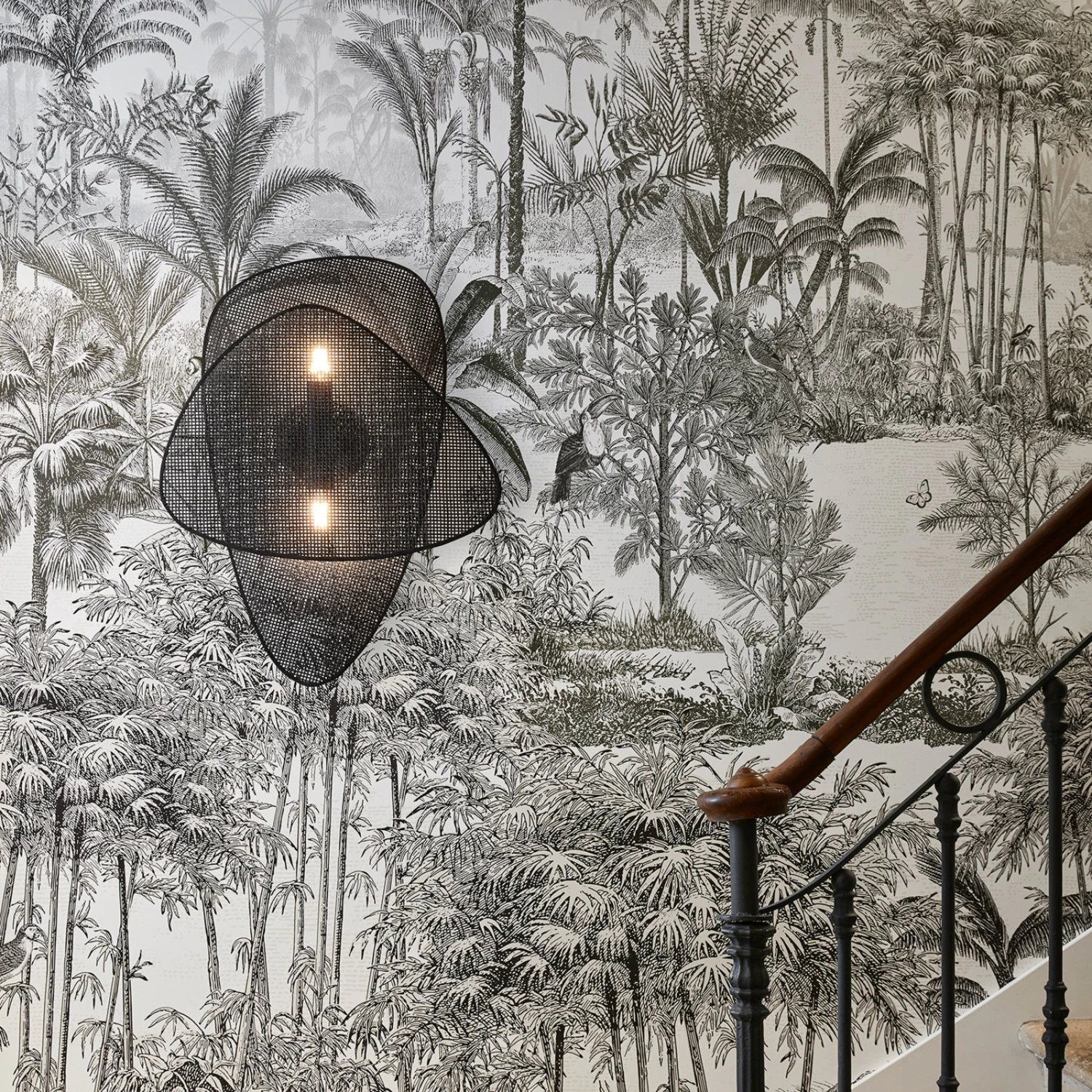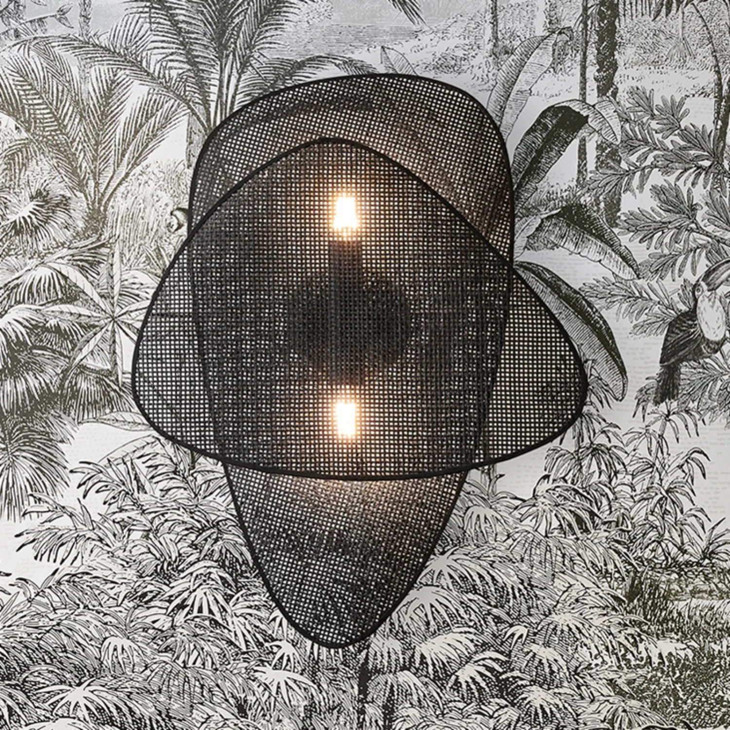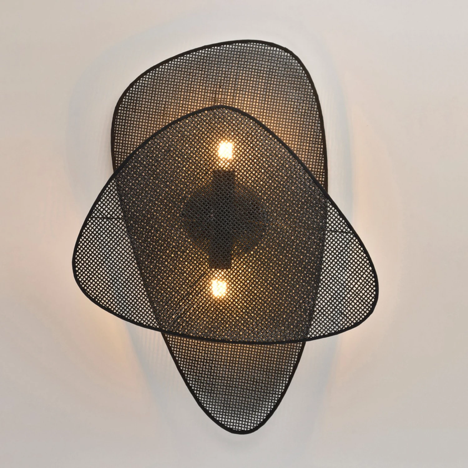 Ausgeschaltet wirkt die zweiflammige Wandleuchte Screen mit den beiden einander überlappenden Schirmen, die in der Form abgerundeten Dreiecken gleichen, eher dezent und unauffällig. Sobald die Beleuchtung eingeschaltet wird und das Licht der beiden eingesetzten Lampen das Flechtmuster der Schirme in Szene setzt, wird der Blick dorthin gelenkt, wo sich Screen befindet. Eine eindrucksvolle Zusatzbeleuchtung für Wohn- und Schlafräume, die ein gemütliches Ambiente bewirkt.