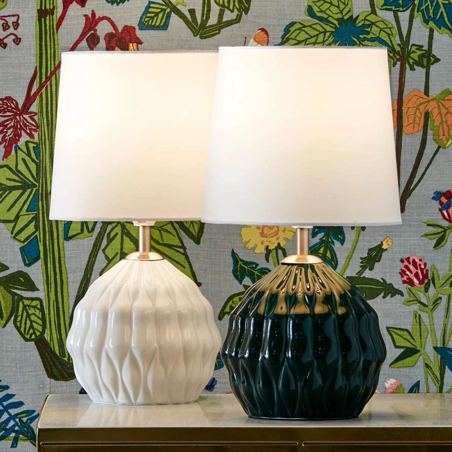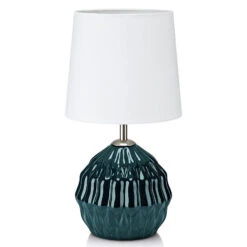 Mit dem smaragdgrünen, strukturierten Keramikfuß und ihrem schneeweißen Textilschirm stellt diese Tischlampe einfach jedes Einrichtungselement gekonnt in den Schatten, denn durch die Kombination der unterschiedlichen Farben und Materialien wirkt sie wunderbar auffallend und dekorativ. Das Licht wird durch den Textilschirm sanft gefiltert, so dass eine besonders angenehme Lichtstimmung im Raum aufkommt. Egal, ob auf einer Fensterbank oder einer Kommode, die Tischleuchte Lora wird überall gern gesehen. Mit Schalter im Zuleitungskabel.