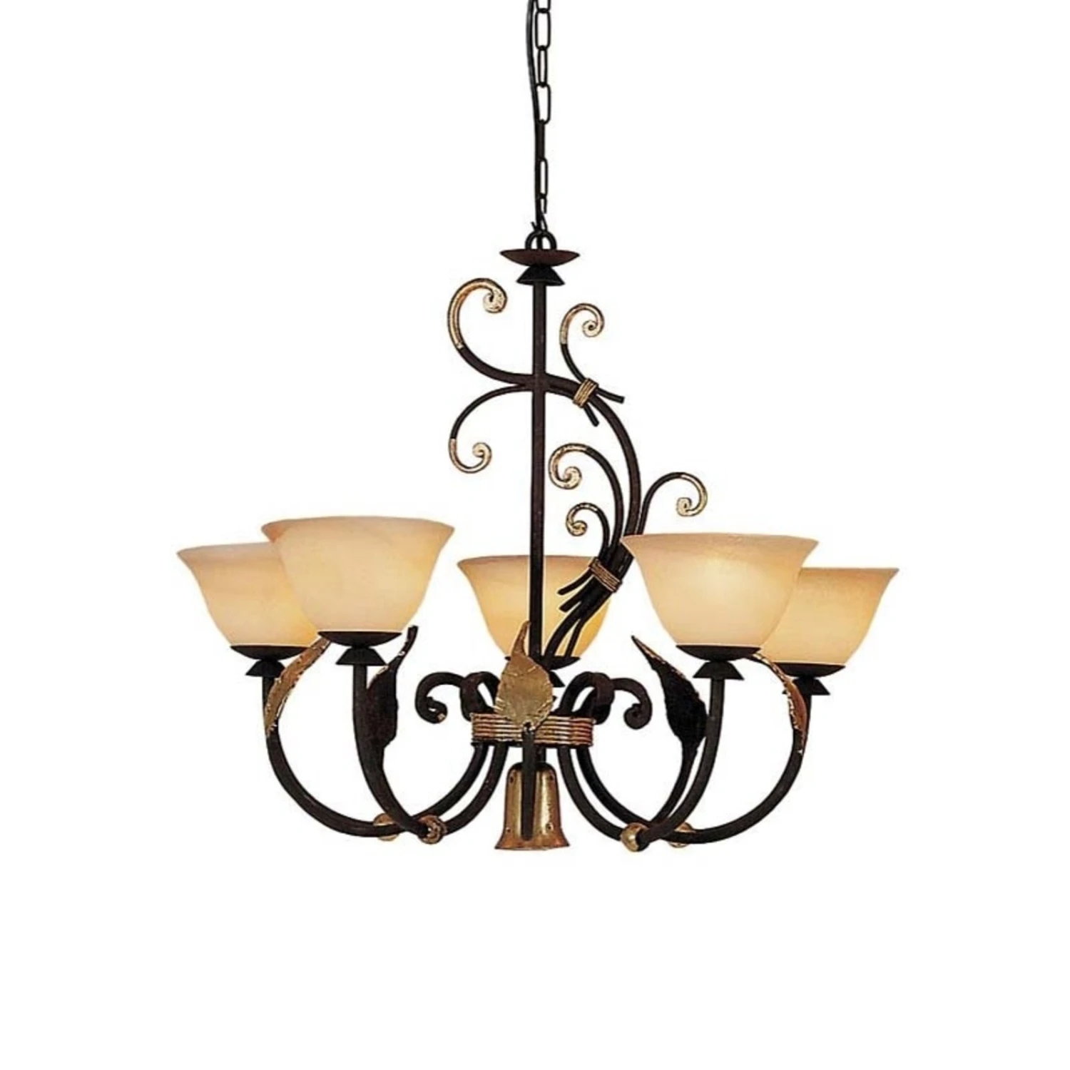 Fünfflammiger Kronleuchter Florence mit Blattgold und Schmiedekunst