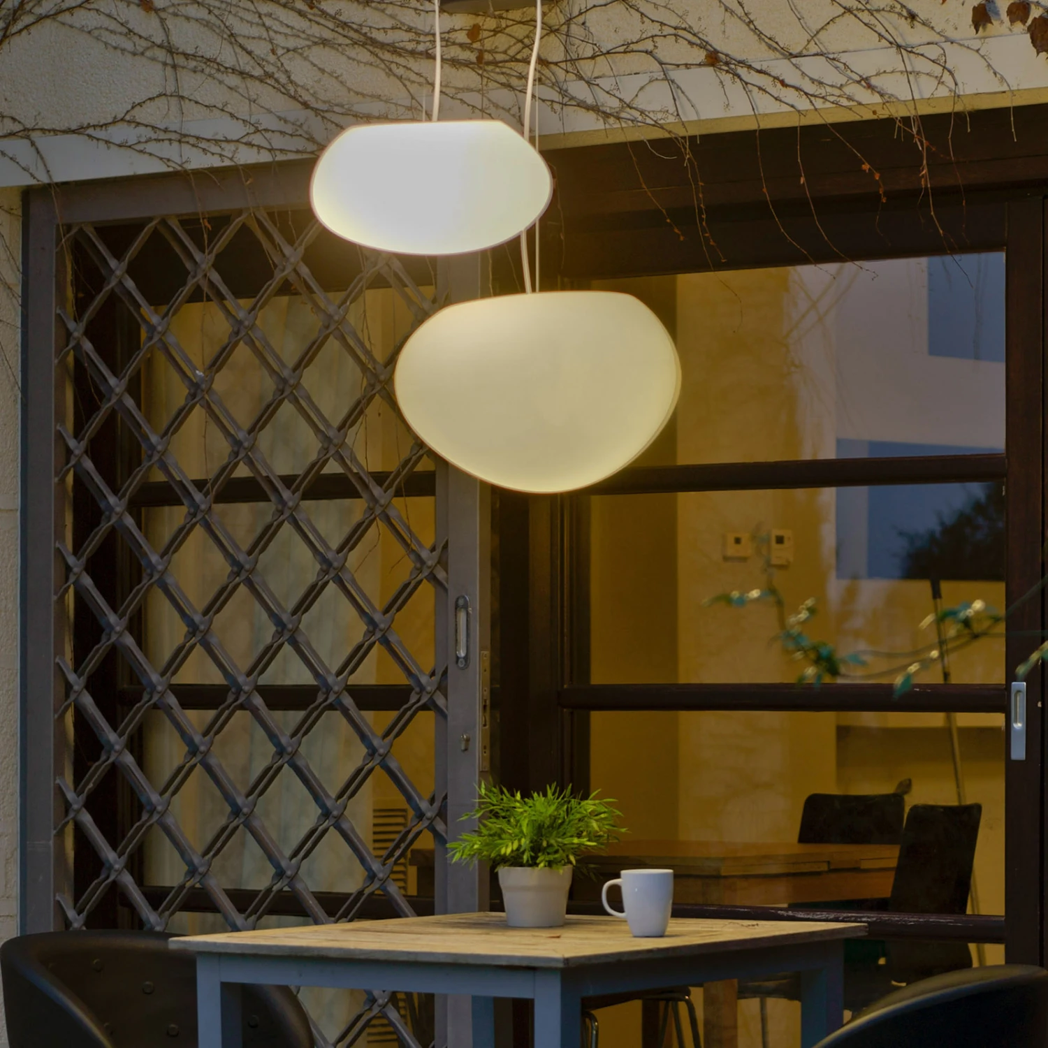 Für den Außenbereich wurde die Hängeleuchte Petra konzipiert. Terrassentische oder auch Tische in gastronomischen Objekten erhellt die Leuchte blendfrei und gleichmäßig und ist außerdem noch eine tolle Dekoration. Der Schirm der Leuchte besteht aus transluzentem Polyethylen, einem recycelbaren und uv-beständigen Kunststoff, der auch widerstandsfähig gegen extreme Temperaturen ist.