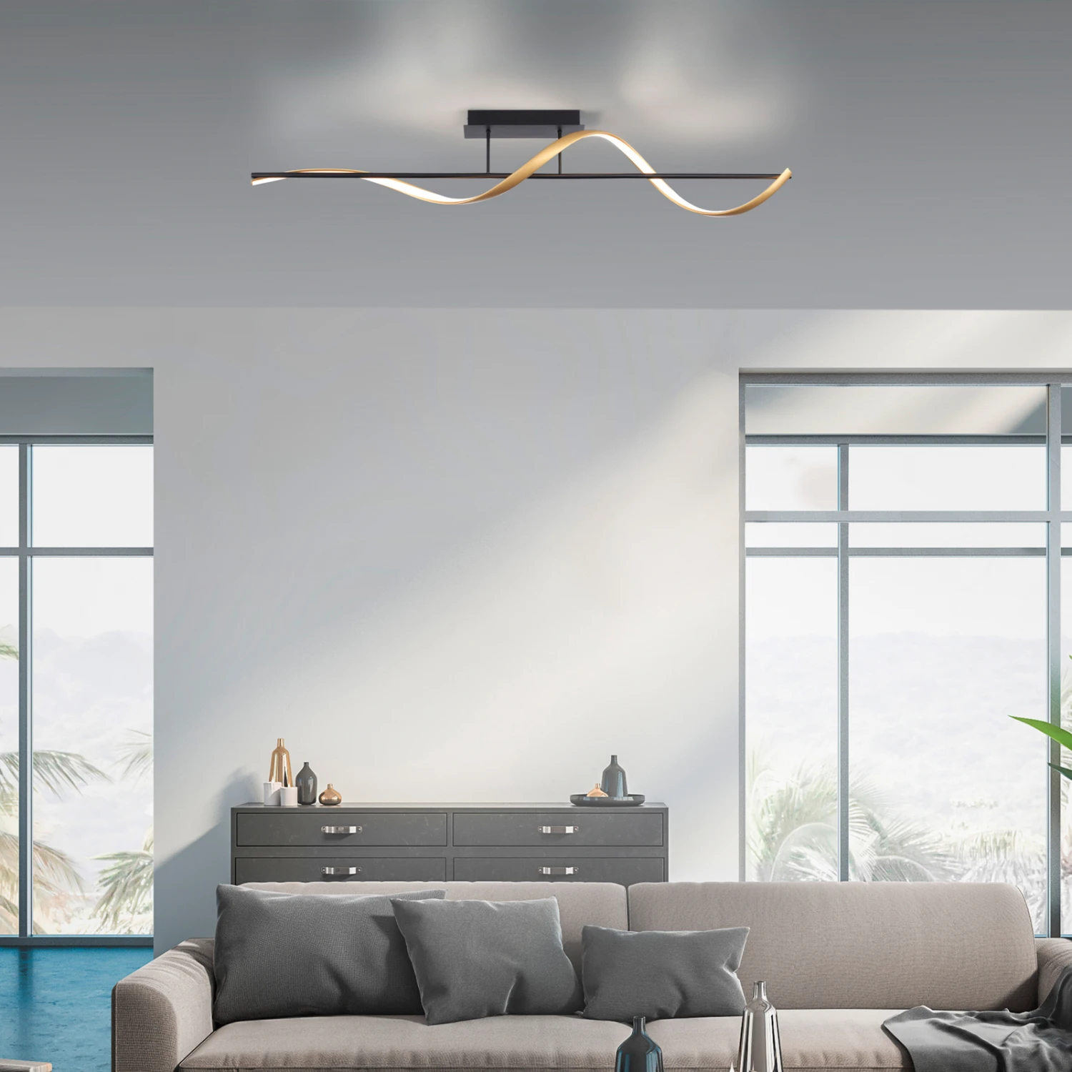 Moderne Abstands-Deckenleuchte Q-Swing mit smart und per Fernbedienung steuerbaren LEDs