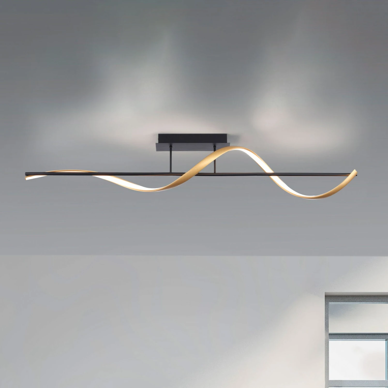 Mit ihrem gekonnten Design, das elegant, dynamisch wirkt, sowie rundum strahlendem Licht ist die LED-Deckenlampe Q-Swing ein wahres Highlight für moderne Einrichtungskonzepte. An zwei Stäben ist unterhalb des rechteckigen Baldachins ein schlanker Balken angebracht, um den sich das charakteristische Lichtelement der Leuchtenserie spiralförmig windet. Die LEDs liegen zu einer Seite des gedreht verlaufenden Elements hinter einer satinierten Abdeckung integriert, sodass eine Lichtabgabe zu allen Seiten gewährt wird.