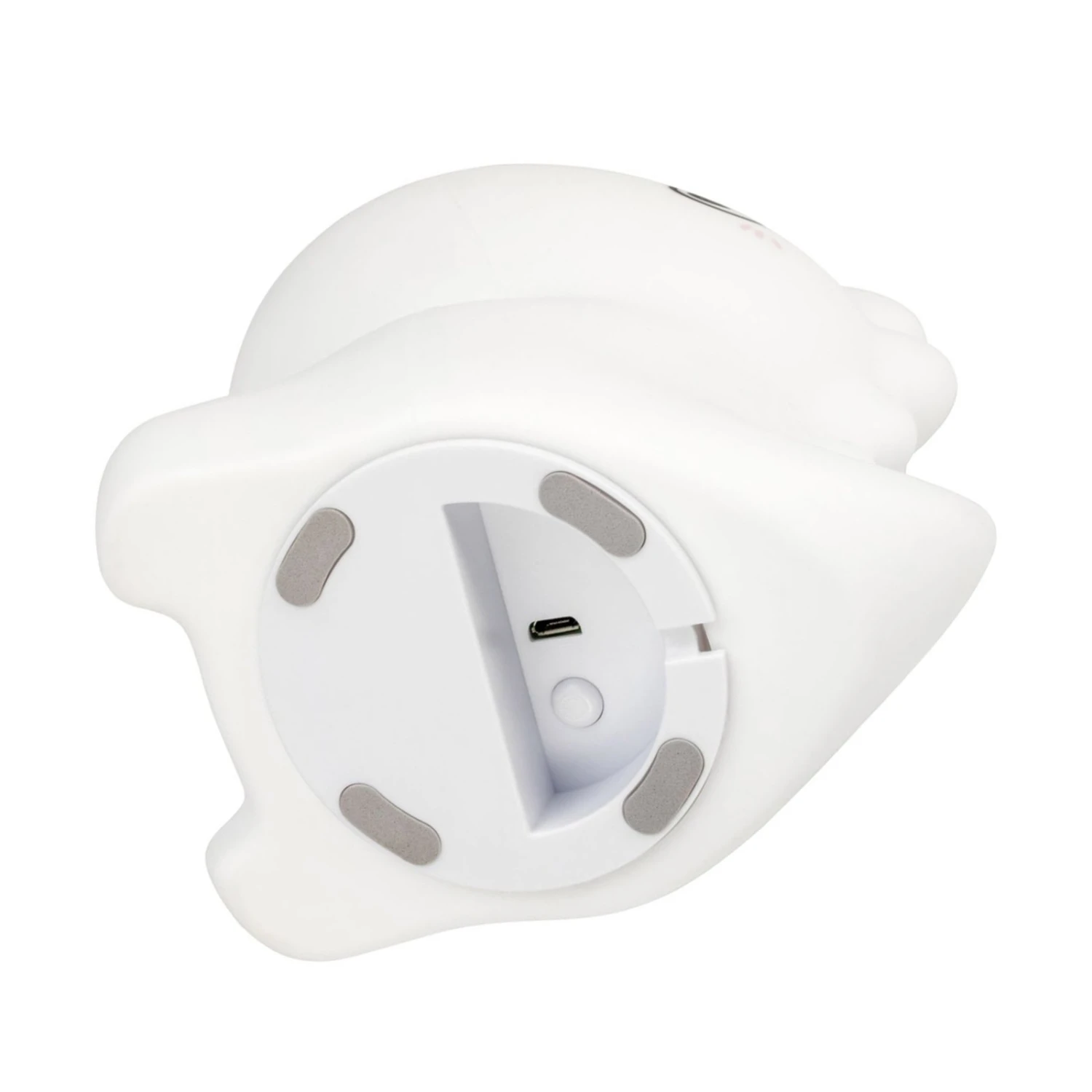 Das LED-Nachtlicht Night Dino kommt in Form eines niedlichen Dinosauriers daher. Sein freundlicher Anblick wirkt beruhigend und so kann es Kindern beim Einschlafen helfen. Ein- und ausschalten lässt sich dieses Kindernachtlicht über einen Schalter auf der Unterseite neben dem USB-Anschluss. Ein USB-Kabel zum Aufladen gehört zum Lieferumfang.