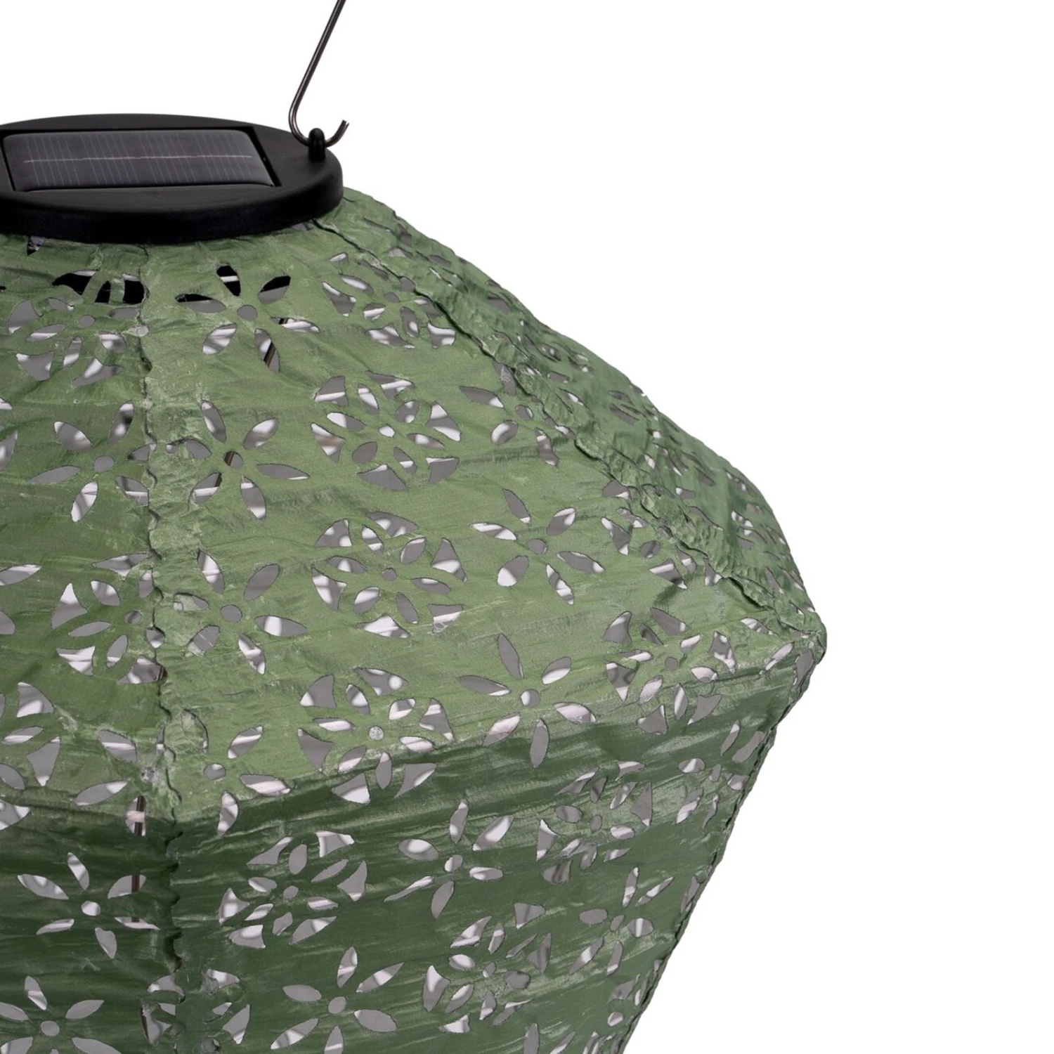 Die LED-Solar-Laterne Sunshine Flower aus grünem Tyvek® Polyethylenvlies ist ein wahres Highlight für den Outdoor-Bereich. Durch ihre perfekte Inszenierung im Garten verleiht sie dem Zuhause einen besonderen Charme. Tagsüber fügt sie sich harmonisch in die natürliche Umgebung ein und bei Dunkelheit erzeugt sie wunderschöne Lichteffekte. Mit dem Griff lässt sich die Dekoleuchte in Bäume oder an Überdächer einfach aufhängen. Dank eines zusätzlichen kürzeren Bügels ist auch das Aufhängen an Erdspießen oder an Stäben zum Laterne gehen mit den Kindern in der Herbstzeit möglich. Mit dem sanften Licht sorgt Sunshine Flower für eine angenehme Stimmung und lädt zum Verweilen ein. Die Solar-Laterne ist mit einem Akku ausgestattet, der per Solarmodul an der Oberseite tagsüber aufgeladen wird. Bei Dämmerung schaltet sich das Licht automatisch ein. Die Leuchtdauer beträgt bis zu 6 Stunden je Ladung. Spritzwassergeschützt gemäß IP44.