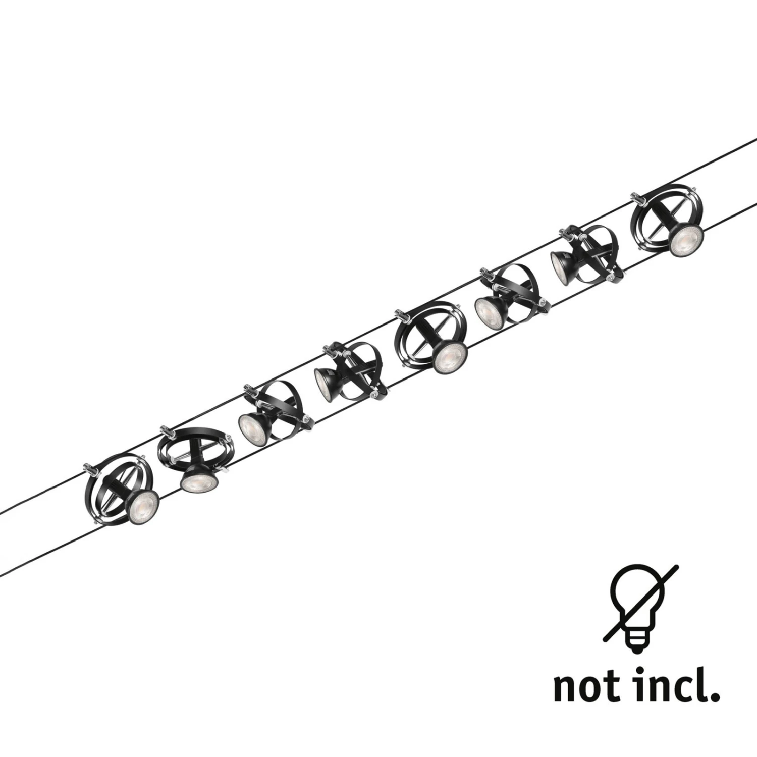 Seilsystem Cardan – achtflammiges Komplettset aus Seil, Trafo und Leuchten