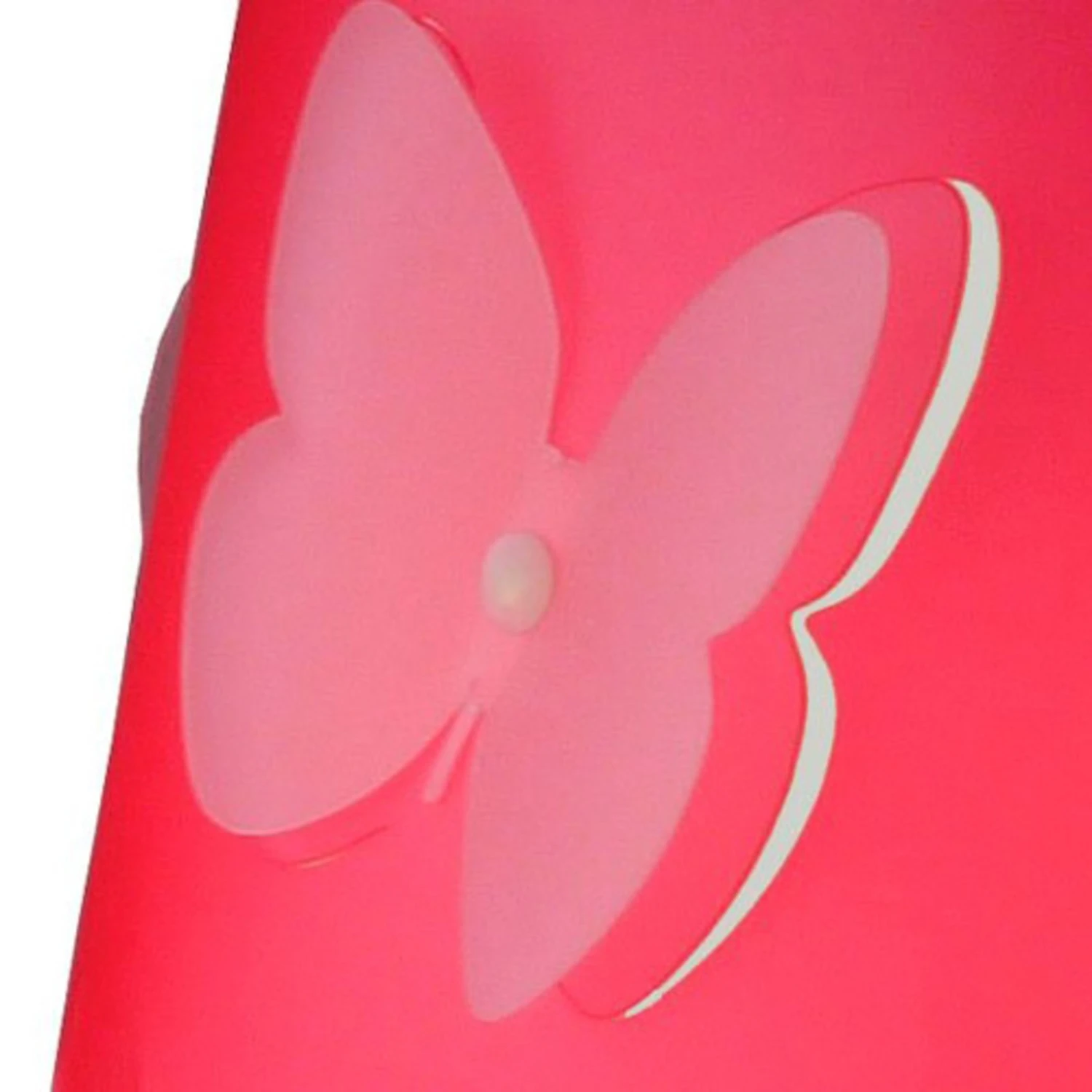 Die Kinderleuchte Rosalie erinnert an sonnige Zeiten. Auf dem roten Leuchtenschirm, der innen weiß ist, sind mehrere Schmetterlinge als Dekoelemente angebracht. Die Flügel der Schmetterlinge sind leicht aus dem Schirm heraus gestanzt, wodurch auf der Oberfläche des Schirms ein Teil des weißen Innenteils der Leuchte zu erkennen ist. Dadurch entsteht ein toller 3D-Effekt, der durch das Licht, das aus der Hängeleuchte strahlt, noch verstärkt wird. Zum Betrieb der Leuchte ist ein Leuchtmittel mit E27-Sockel notwendig, das nicht im Lieferumfang enthalten ist.