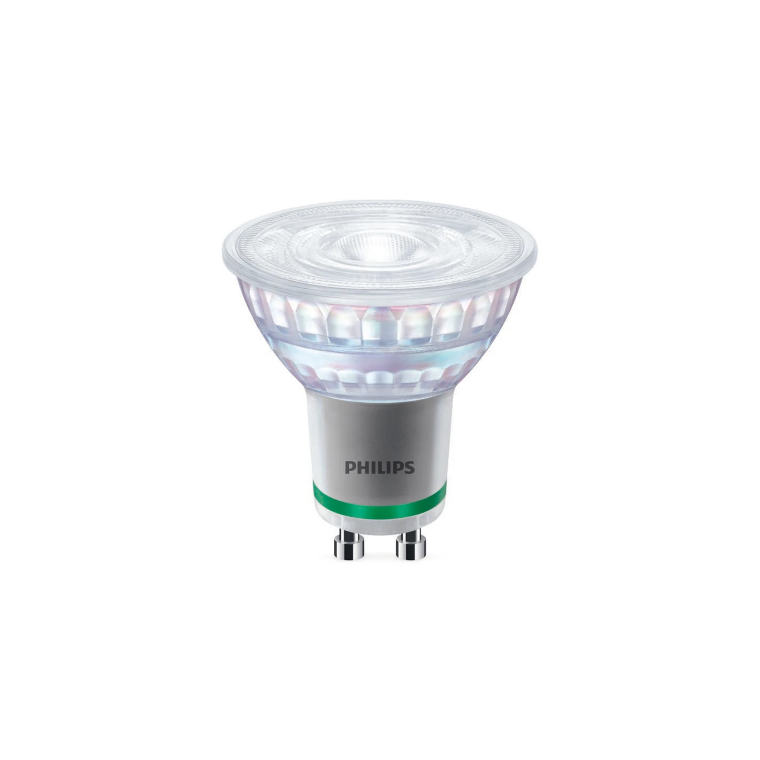 Dieser 2,1 W GU10 LED-Reflektor bietet universalweißes Licht und dient als langlebiger, energieeffizienter Ersatz für herkömmliche 50 W Hochvolt-Halogenlampen. Nicht dimmbar. Ultraeffizient – hervorragende Lichtausbeute mit 178 lm/W.