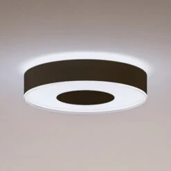 Die moderne und elegante LED-Deckenleuchte Infuse sorgt mit direktem Licht und Deckenaufhellung für eine umfassende Raumbeleuchtung. Sie ist in runder Form gestaltet, seitlich mit einem umlaufenden Rahmen und an der Unterseite mit einer zentralen Blende versehen. Neben einem Weißlicht in verschiedenen Farbtemperaturen, wie warmweiß oder tageslicht, bietet die Leuchte ebenso farbiges Licht, sodass verschiedenste Lichtszenarien möglich werden; dabei ist die Helligkeit ebenfalls stets regelbar. Gesteuert wird die Leuchte entweder direkt via Bluetooth mit dem Smartphone/Tablet oder via ZigBee-Bridge eingebunden in einem Smart Home System, wie beispielsweise Philips Hue.