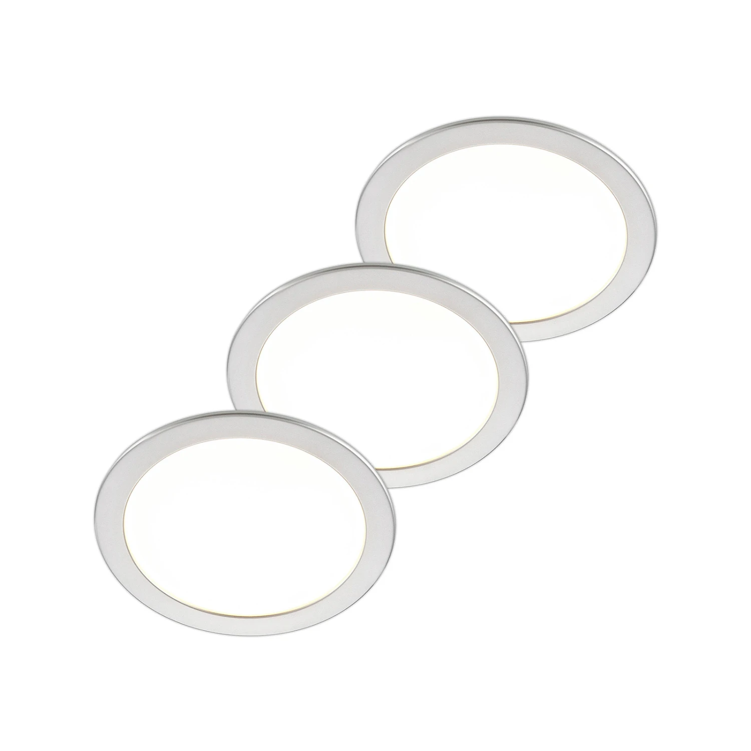 Silberne LED-Einbaulampe Cadance in runder Form, IP44, Einstellung der Lichtfarbe vor Montage, dimmbar – im 3er-Set