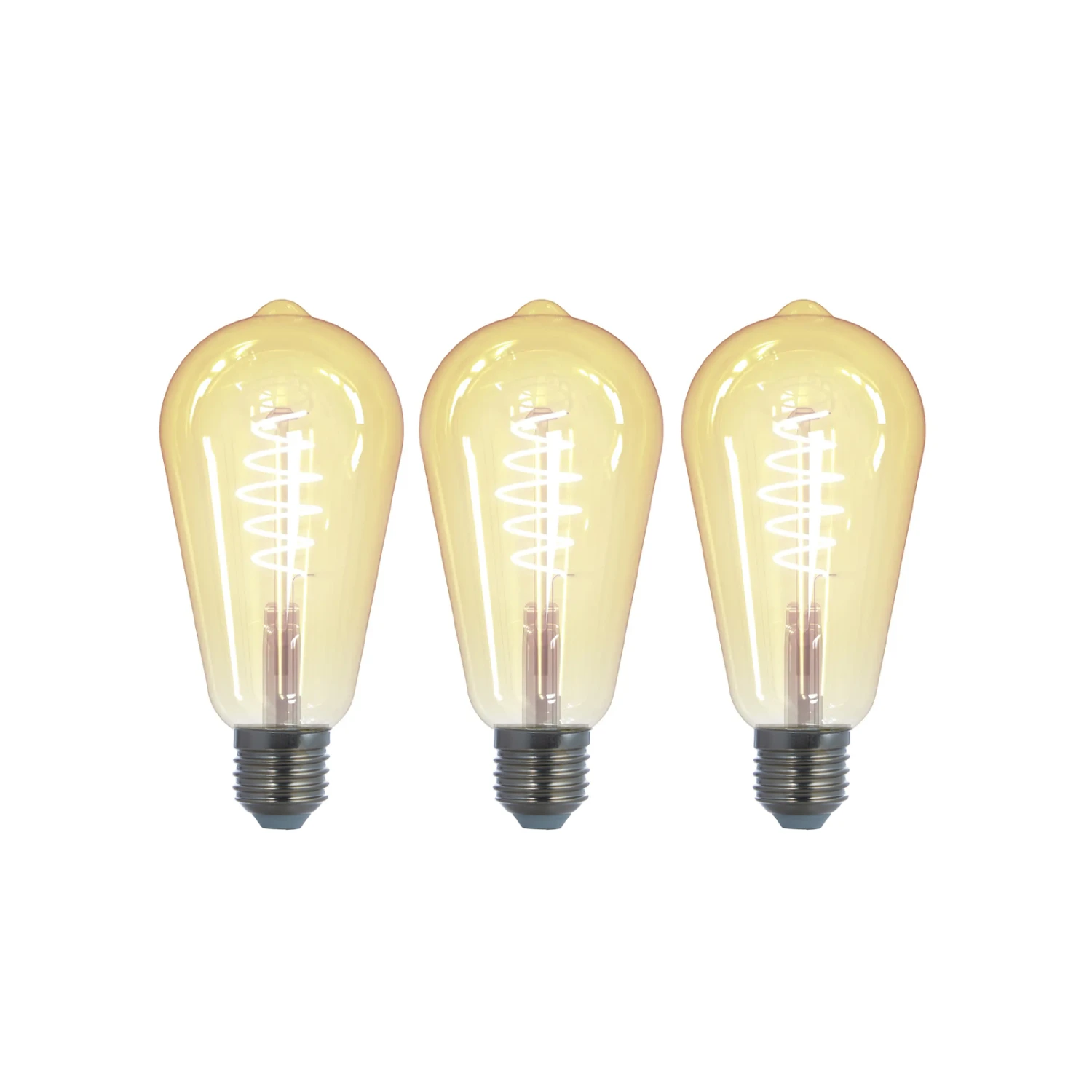 Dieses Filament-Leuchtmittel vereint ein modernes Vintage-Design mit praktischen Funktionen. Es besitzt eine klare Oberfläche und generiert eine warmweiße Beleuchtung (2.500 K). Darüber hinaus ist es mit ZigBee, Tuya und Philips Hue steuerbar. Es eignet sich vor allem für Leuchten, die einen freien Blick auf die Lichtquelle gewähren und das auffallende Aussehen des Leuchtmittels nicht verstecken.