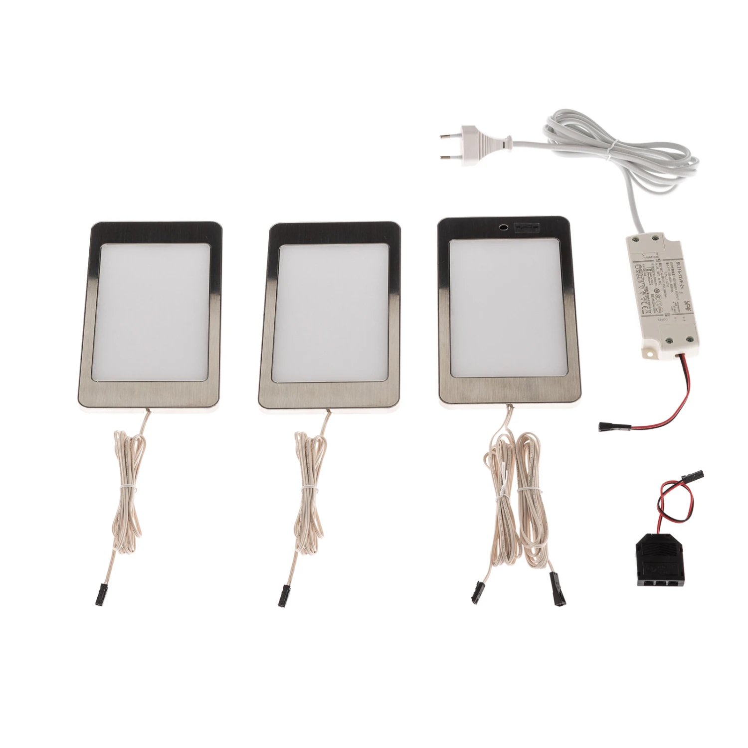 LED-Küchenunterbauleuchten Jelana aus Edelstahl im praktischen Dreier-Set