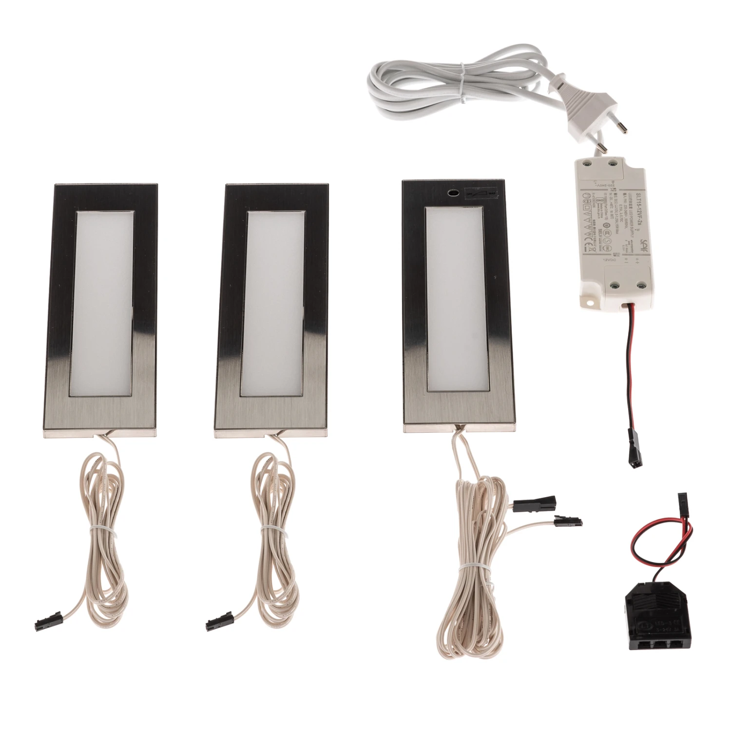 LED-Edelstahl-Unterschrankleuchten Juska im Set mit drei Stück, praktisch für die Küche