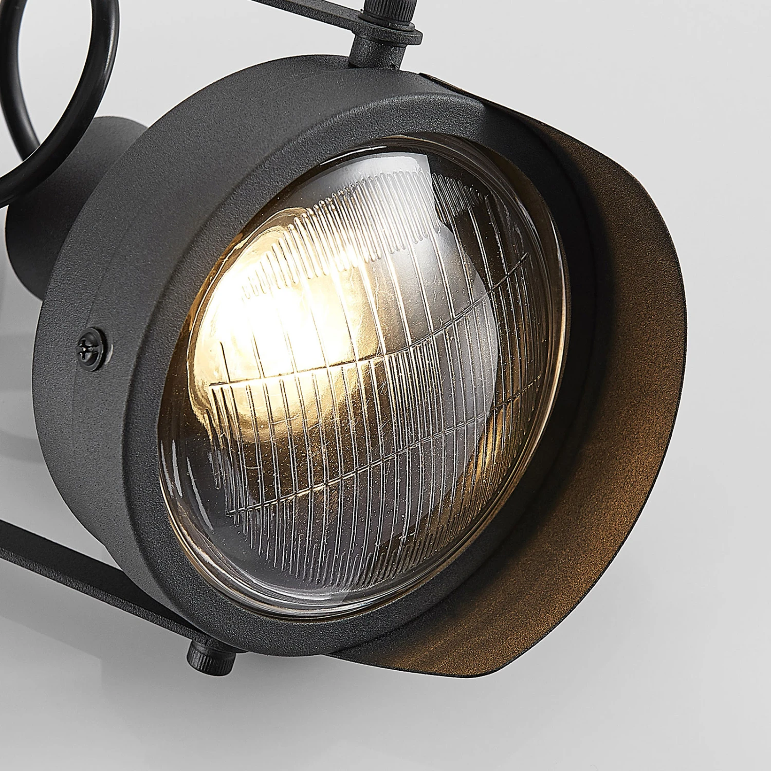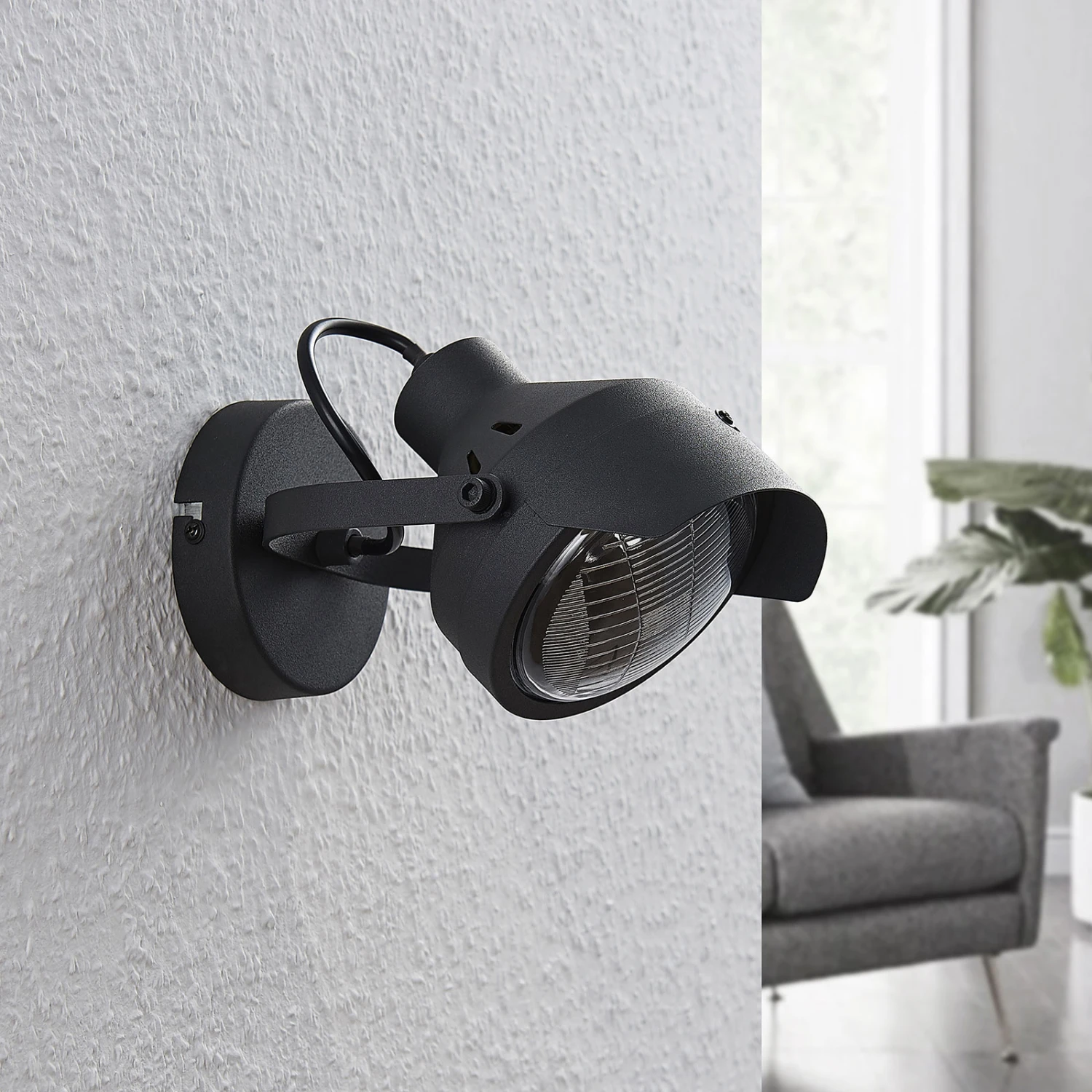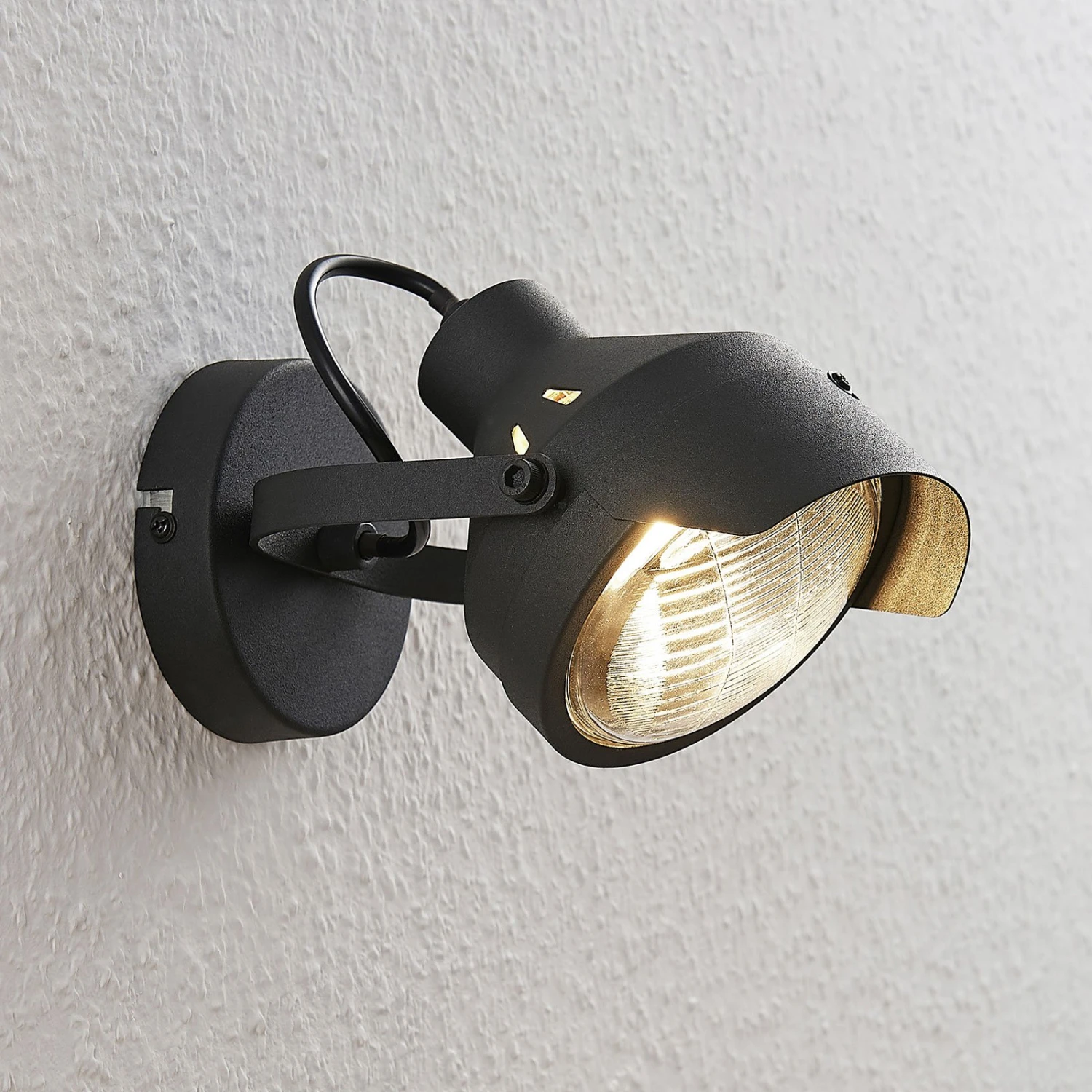 Henega ist eine ganz in Schwarz gehaltene Leuchte, die unverkennbar Assoziationen zu Autoscheinwerfern aus weit zurückliegenden Jahrzehnten aufkommen lässt. Damit verkörpert sie einen gewissen Vintagelook, der sich schon seit längerer Zeit einer großen Beliebtheit erfreut. Der Glaseinsatz über dem GU10-Leuchtmittel ist stilecht geriffelt, auch das ein Element, das an längst vergangene Zeiten erinnert. So stellt der Wandspot einen ganz besonderen Lichtspender dar, der schnell zum Blickfang wird. Dabei kann der Schirm variabel ausgerichtet werden.