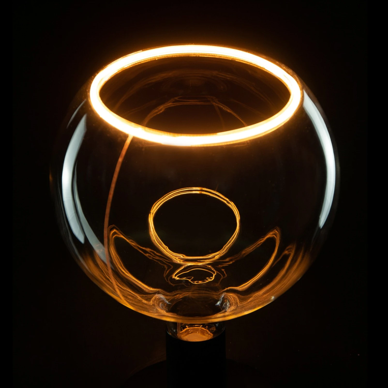 Allein durch ihre beachtliche Größe wird die LED-Floating-Globelampe zu einem schönen Blickfang im Wohnbereich. Verstärkt wird die dekorative Optik durch die Öffnung an der Oberseite des Leuchtmittels. Besonders gut eignet sie sich daher für den Einsatz in offen gestalteten Fassungsleuchten oder Leuchten ohne Schirm. Das warme Licht sorgt für eine angenehme Atmosphäre im Wohnbereich. Außerdem ist es möglich, die Helligkeit der LED-Lampe mit einem externen Phasendimmer zu regulieren.