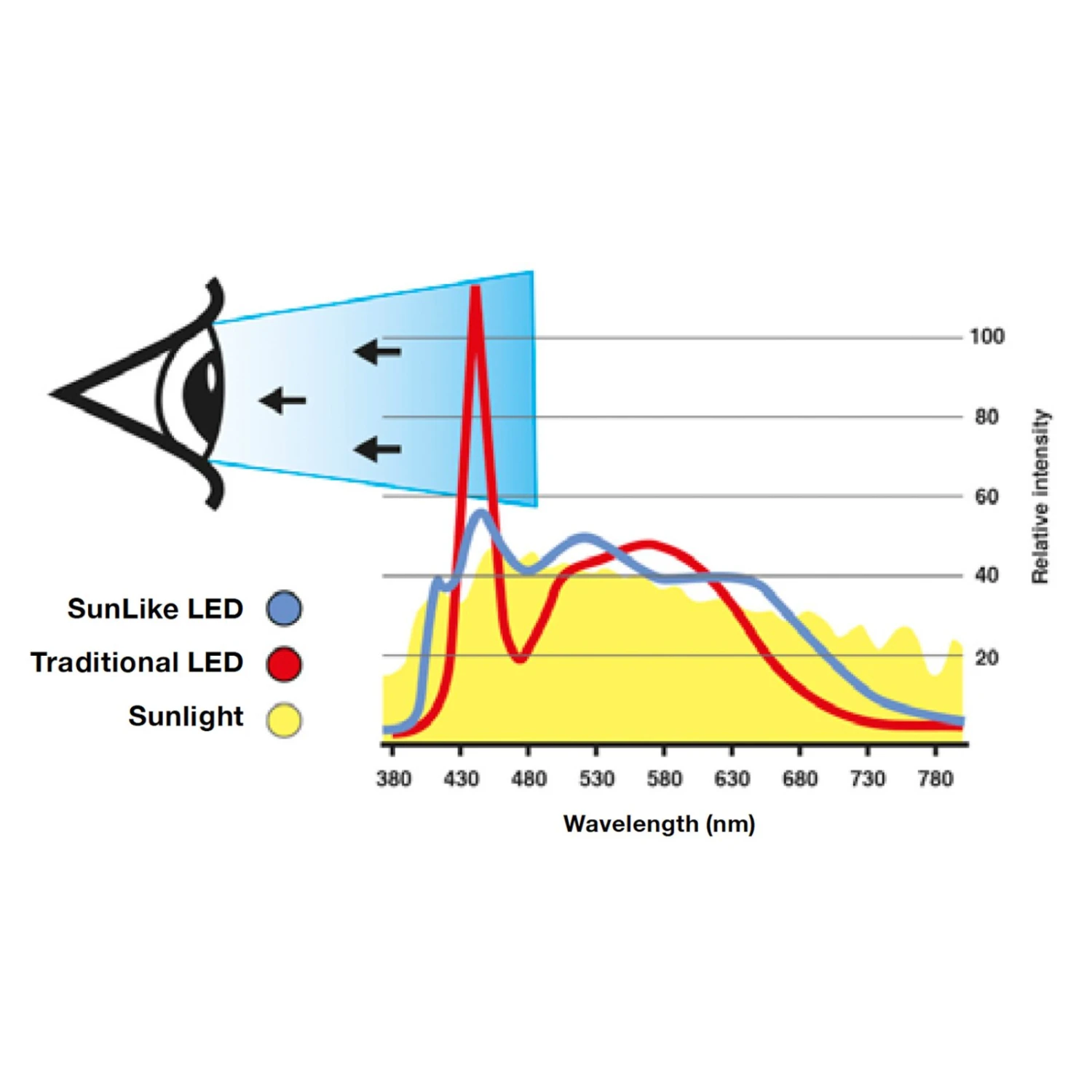 Besonderheit ist der SunLike-Chip, welcher dem Licht eine ausgezeichnete Farbwiedergabe verleiht. Dadurch werden die natürlichen Texturen und Farben der erhellten Objekte wunderbar präsentiert; hiervon geht eine positive Wirkung auf Sehkomfort und Wohlbefinden aus.