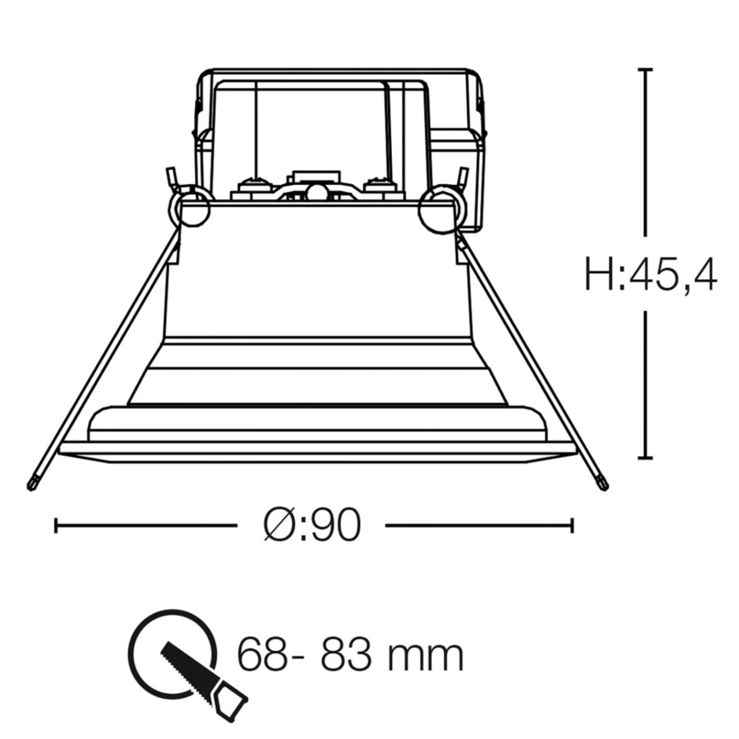 – Montage in Deckenöffnungen mit Ø 6,8 bis 8,3 cm möglich