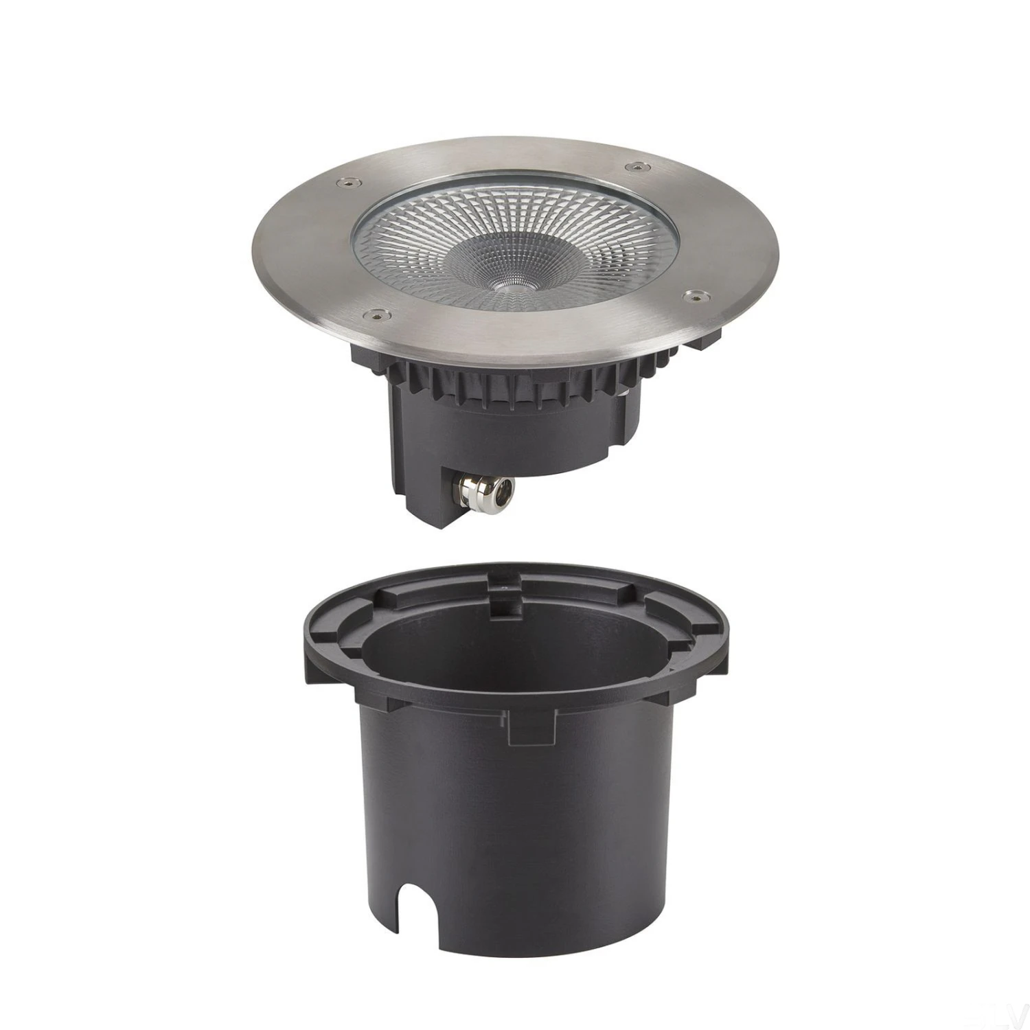 Edelstahl-Bodeneinbauleuchte Rocci mit runder Blende