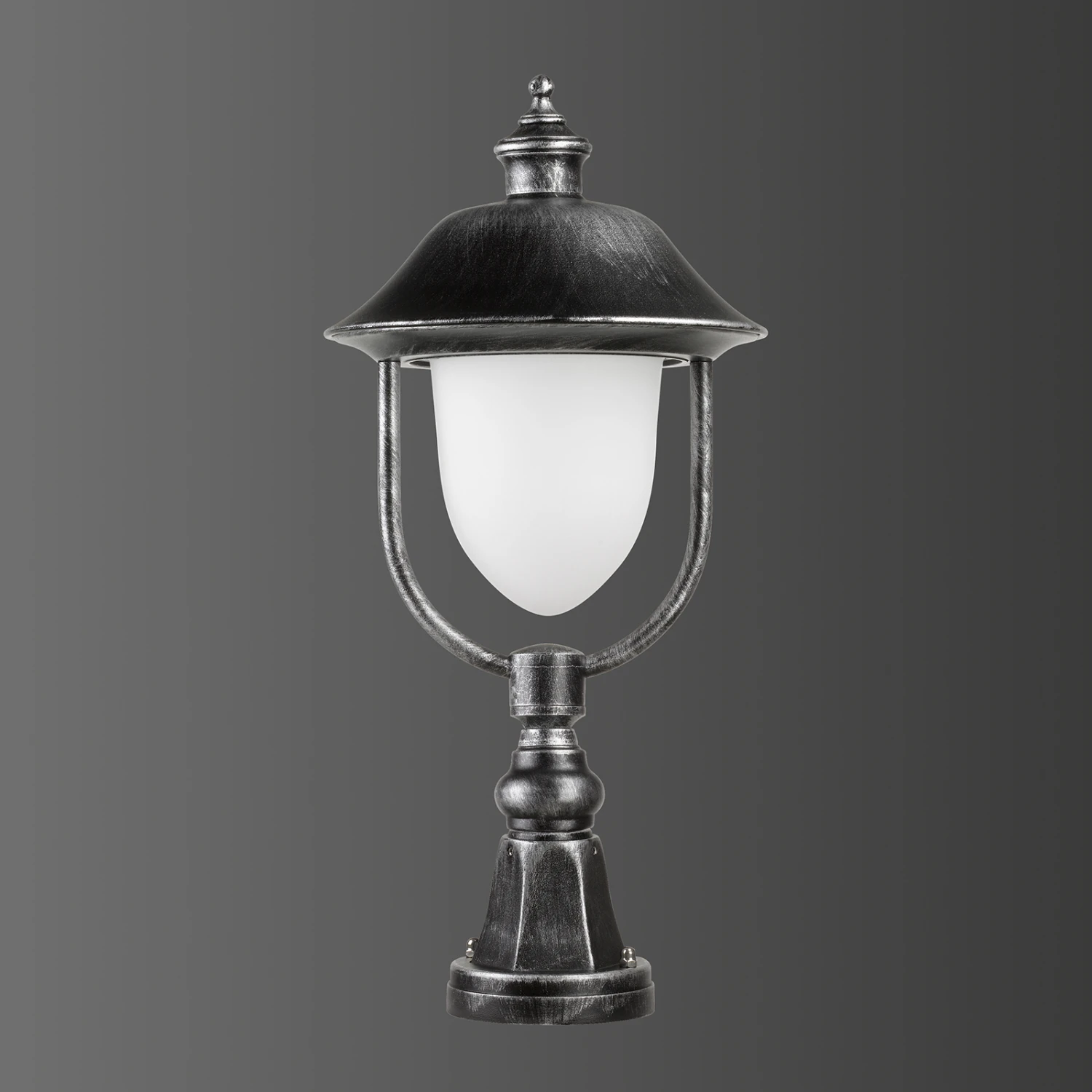 Das antike Design der Sockelleuchte 1156 spiegelt sich nicht nur in der Form-, sondern auch in der Farbgebung wider. Das Gehäuse aus Aluminium-Druckguss ist mit einem schwarz-metallischen Finish veredelt und wird vom abstrahlenden Licht des opalen Leuchtenglases eindrucksvoll in Szene gesetzt. Die ästhetische Form des Glases ist ein weiterer Pluspunkt der Sockelleuchte 1156, die auf jedem Grundstück für eine adäquate Umgebungsausleuchtung sorgt.