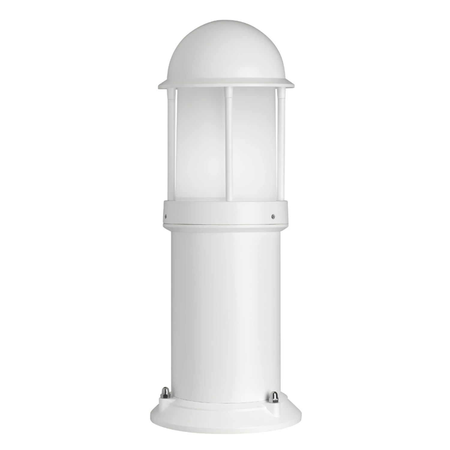 Die abgerundet geformte Sockelleuchte Marco aus Aluminiumdruckguss verleiht dem Außenbereich eine leicht maritime Note und sorgt – auf Mauern oder Sockeln montiert – für angenehme Helligkeit und gleichzeitig auch für Sicherheit auf dem Grundstück. Der weiße Diffusor aus Polycarbonat lässt das Licht ringsum gleichmäßig scheinen, ohne dass man geblendet wird. Die mit Schutzart IP44 ausgerüstete Sockelleuchte ist für den Einsatz von LED-Leuchtmitteln und Energiesparlampen geeignet.