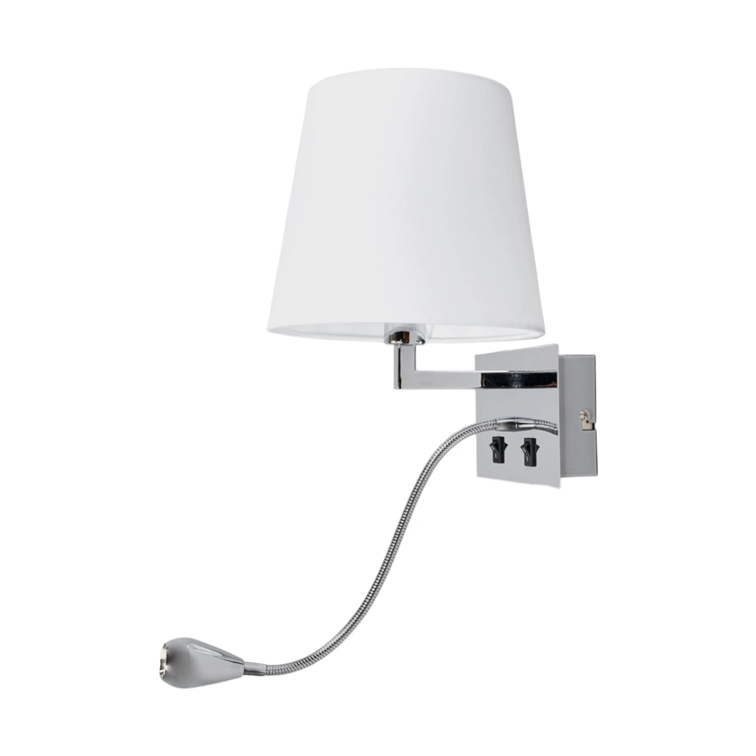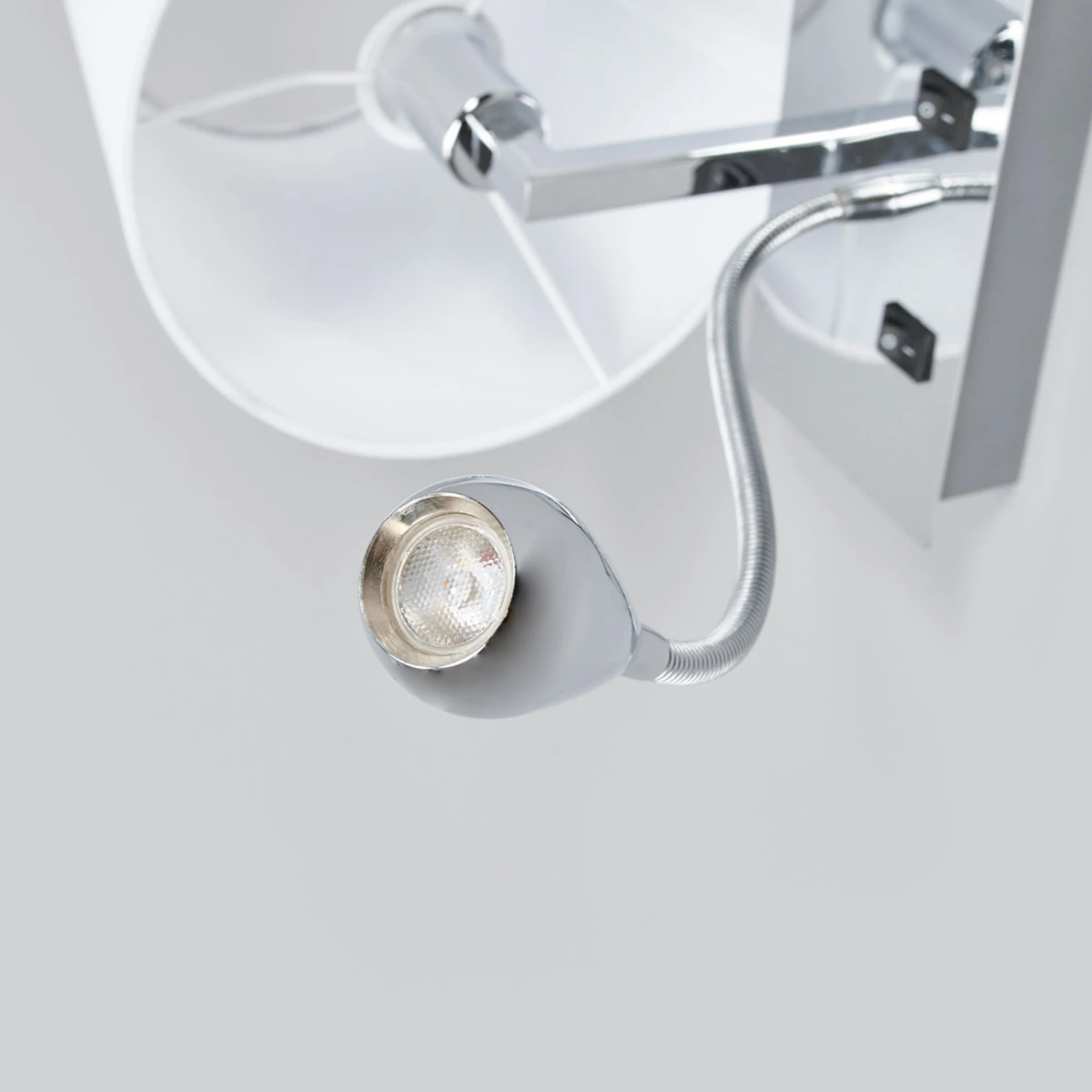 Weiße Stoffwandlampe Leonella mit gemütlichem Lichtschein und integrierter LED-Leselampe mit Flexarm