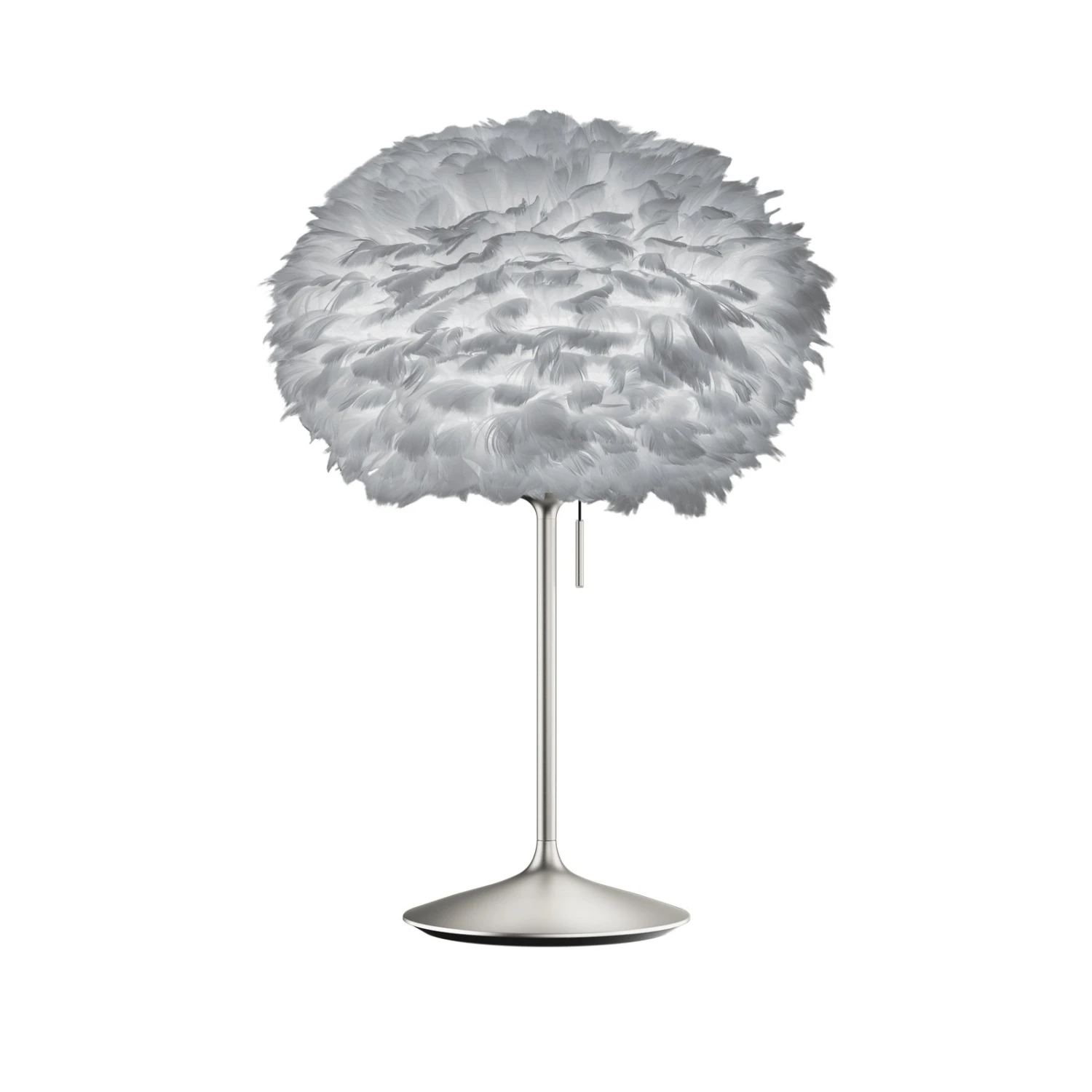 Tischleuchte Eos medium mit einem Schirm aus Federn auf Stahlgestell