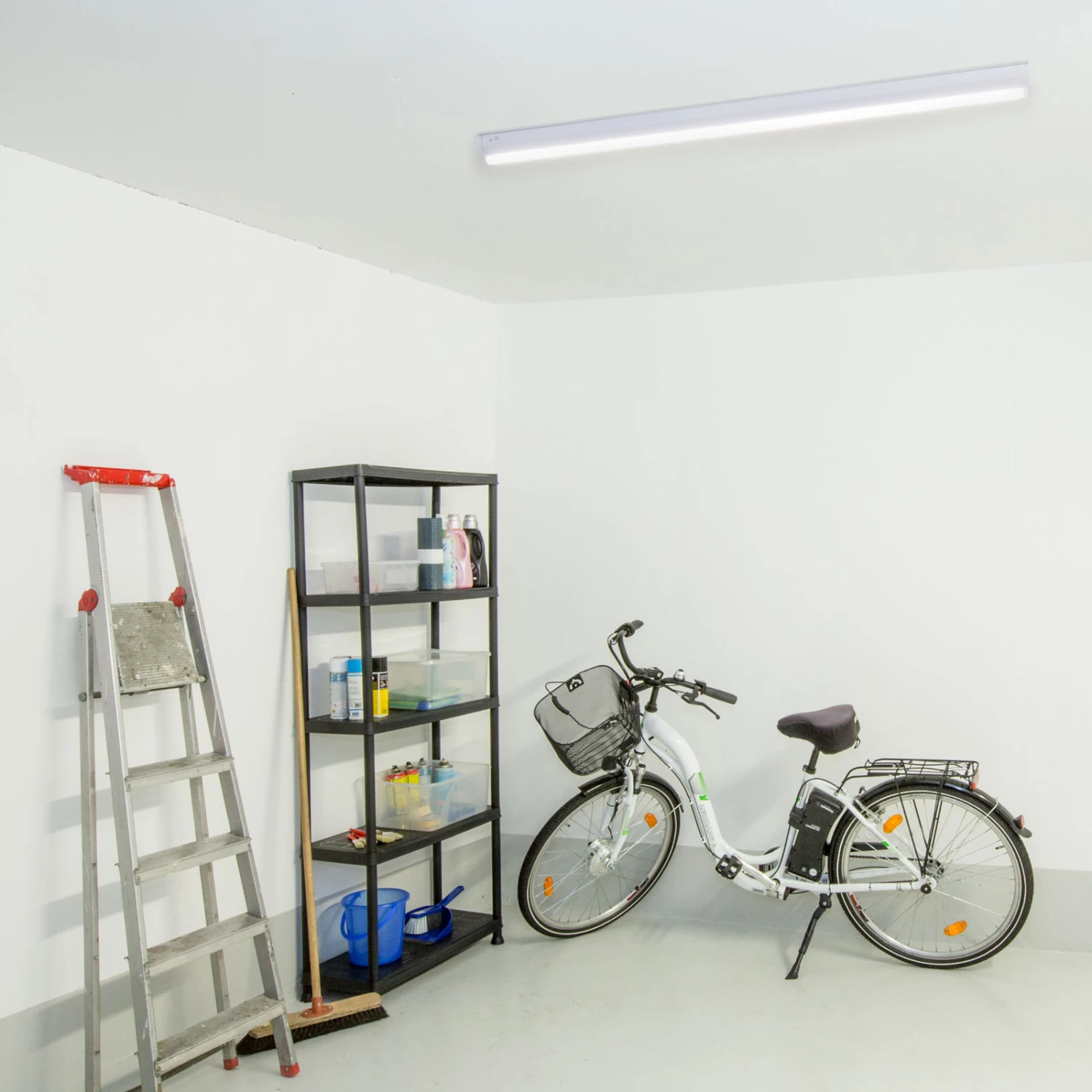 Universalweiße Beleuchtung spendet die LED-Deckenleuchte Basic 1, die frühere Neonlampen in Kellern, Garagen, Werkstätten etc. ersetzt. Sie zeichnet sich neben der langen Lebensdauer von bis zu 25.000 Stunden durch eine sehr energiesparende Beleuchtung aus. Die Leuchten sind hinter den Endkappen bereits zur Verbindung untereinander vorbereitet. Eine Herstellergarantie von 5 Jahren spricht für die Qualität und Langlebigkeit dieser LED-Deckenleuchte.