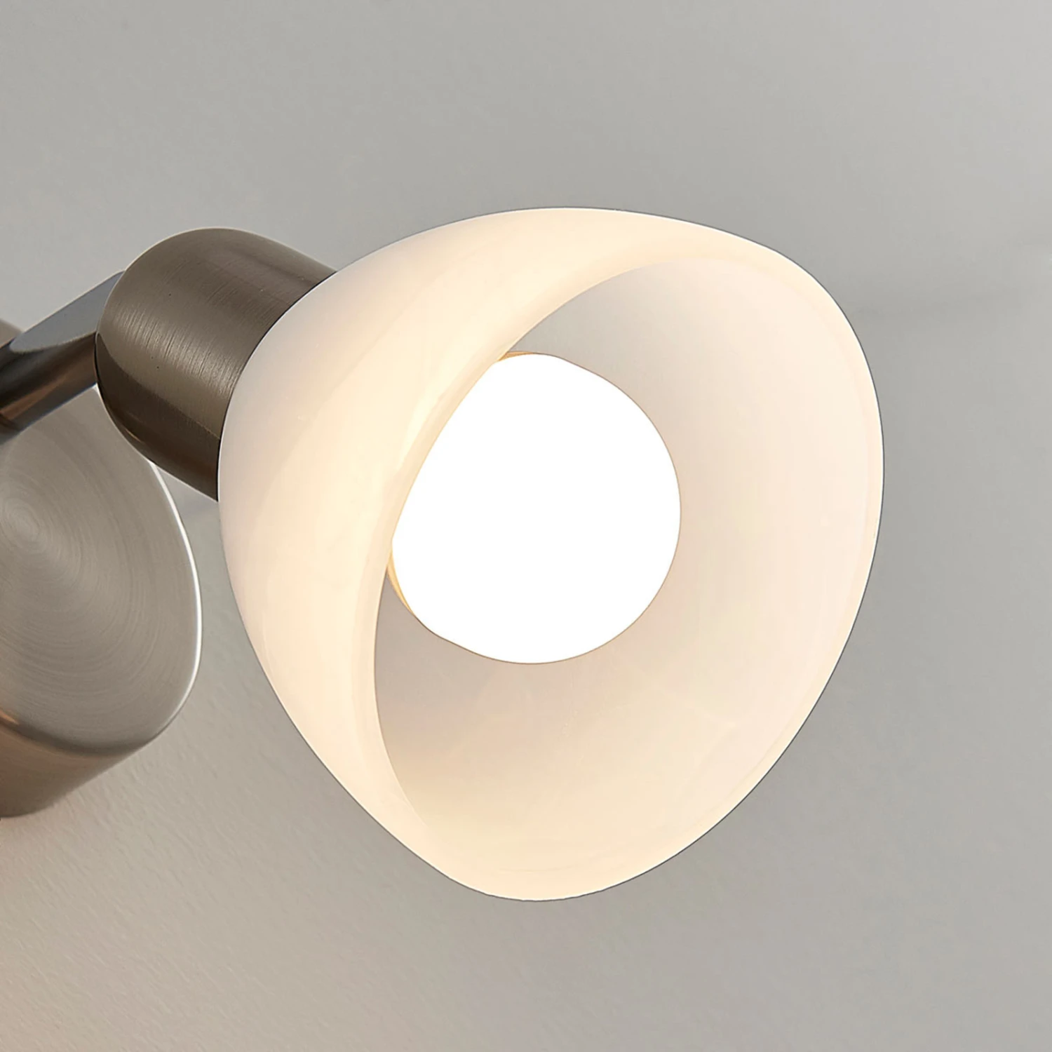Paulina ist eine Wandleuchte, die wie ein Strahler aufgebaut ist. Über ein Gelenk ist der Schirm mit der Wandhalterung verbunden, so dass man ihn drehen und schwenken kann. Bei Bedarf empfiehlt sich auch die Deckenmontage. Der bauchige weiße Schirm hat eine edle Alabastertönung, so dass man sanfte Nebelschwaden erkennen kann, die das Glas durchziehen. Zudem bewirkt das Glas eine weiche Lichtverteilung und damit eine höhere Wohnlichkeit.