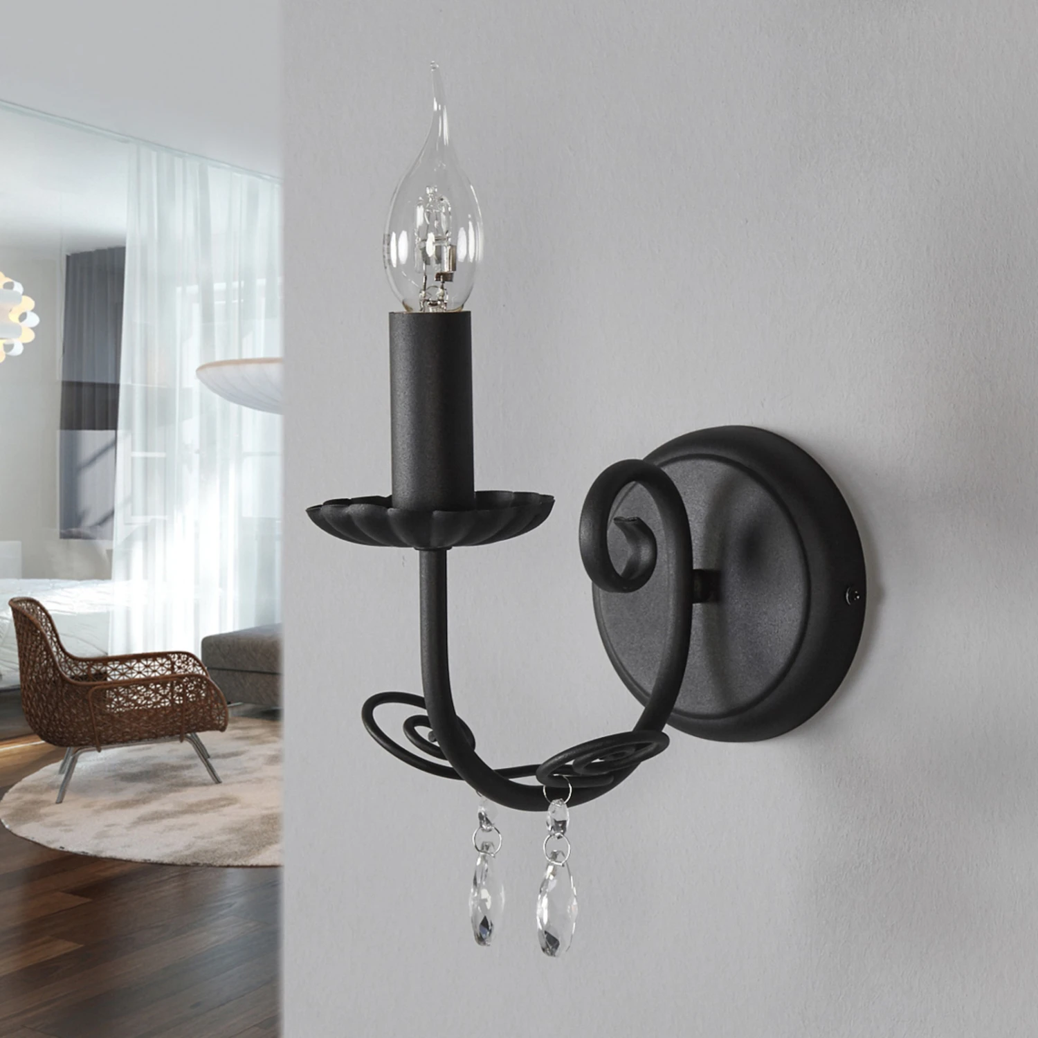 Sophina ist eine Wandleuchte, die durch ihr antikes Aussehen betört, denn man könnte durchaus meinen, dass es sich um ein Beleuchtungselement handelt, das schon einige Lebensjahre zu verbuchen hat. Das ist dem sanft verschnörkelten Design und der dunklen Oberfläche geschuldet. Dezente Anhänger aus klarem Kristall ergänzen das Erscheinungsbild auf elegante Weise und um den Look besonders stilvoll zu komplettieren, verwendet man am besten E14-Lampen in Windstoßoptik, die schnell die Assoziation zu echtem Kerzenlicht aufkommen lassen.
